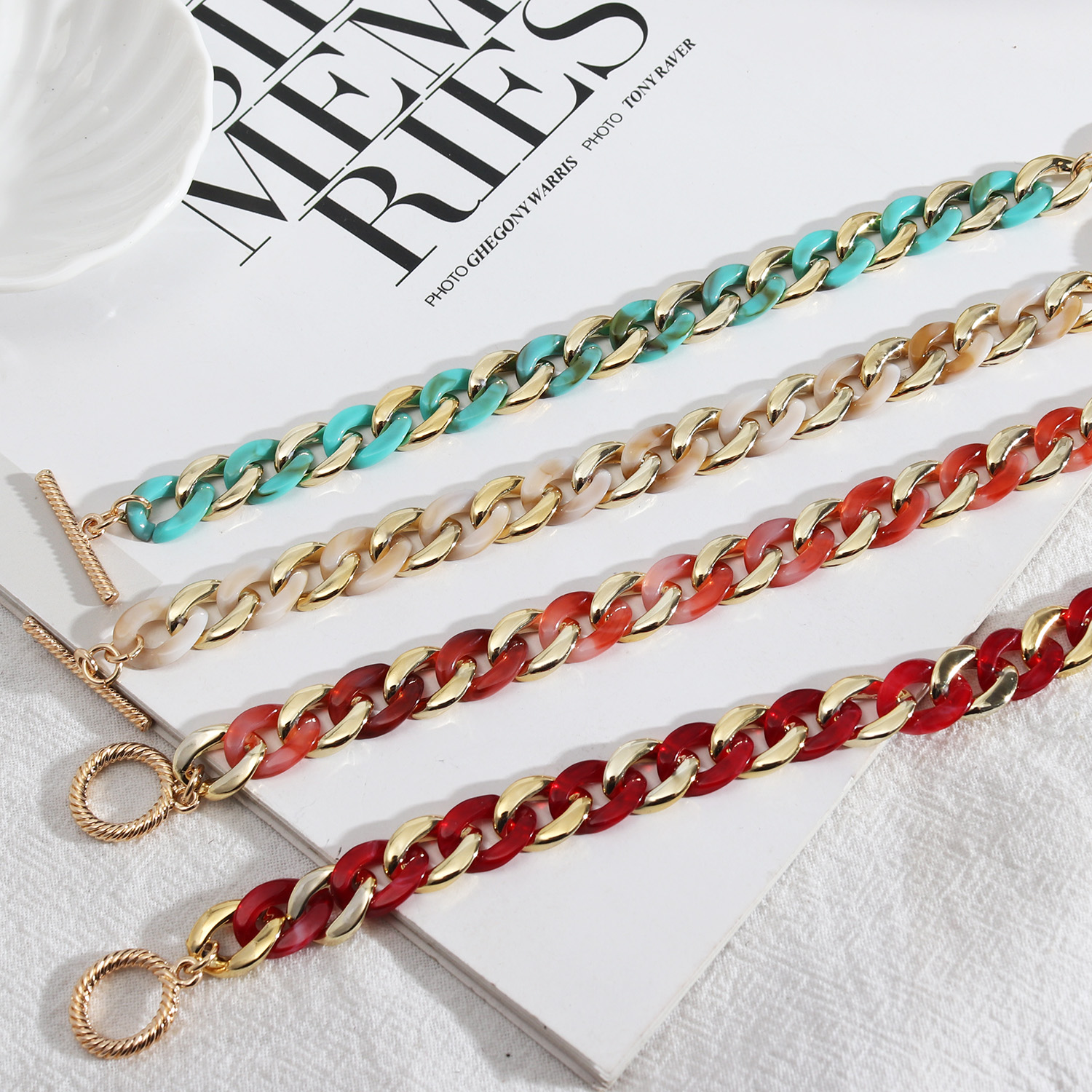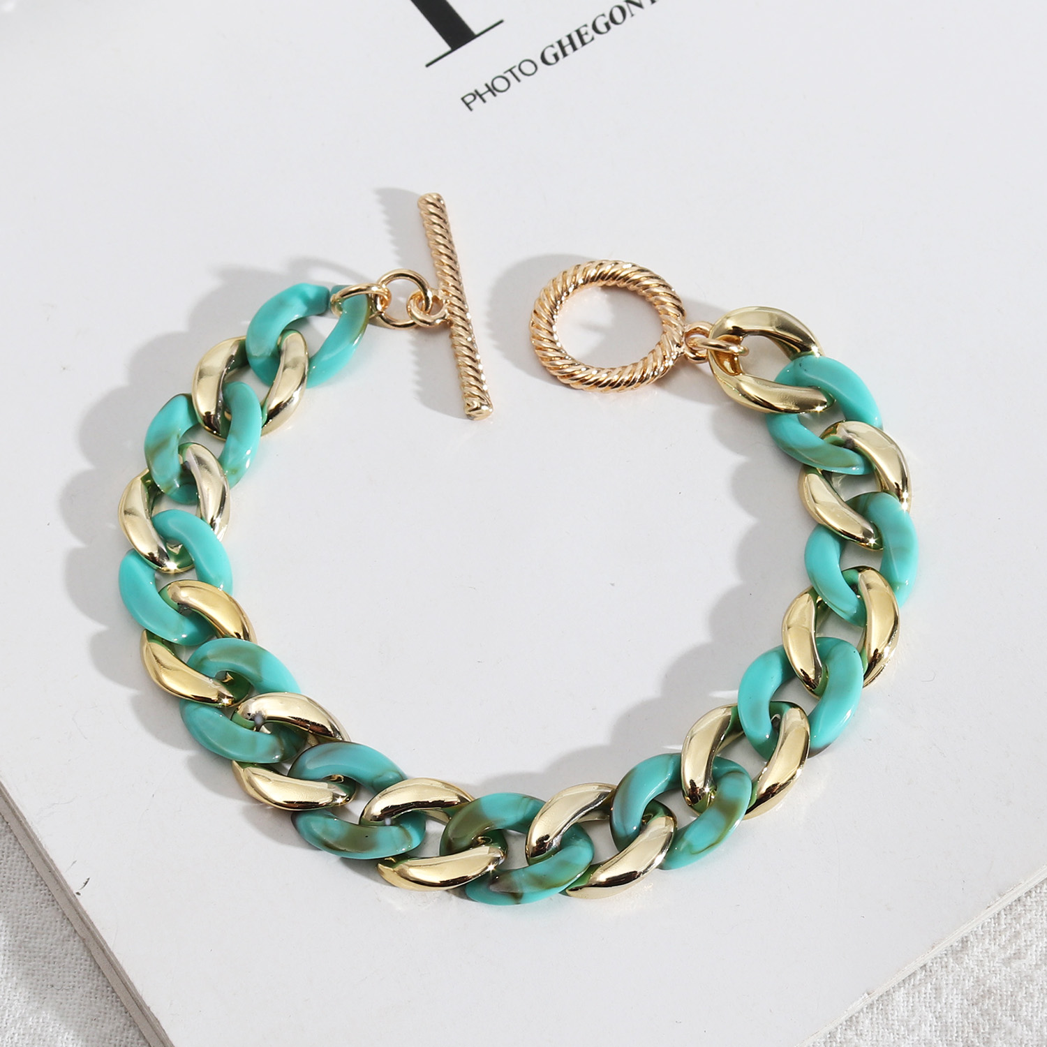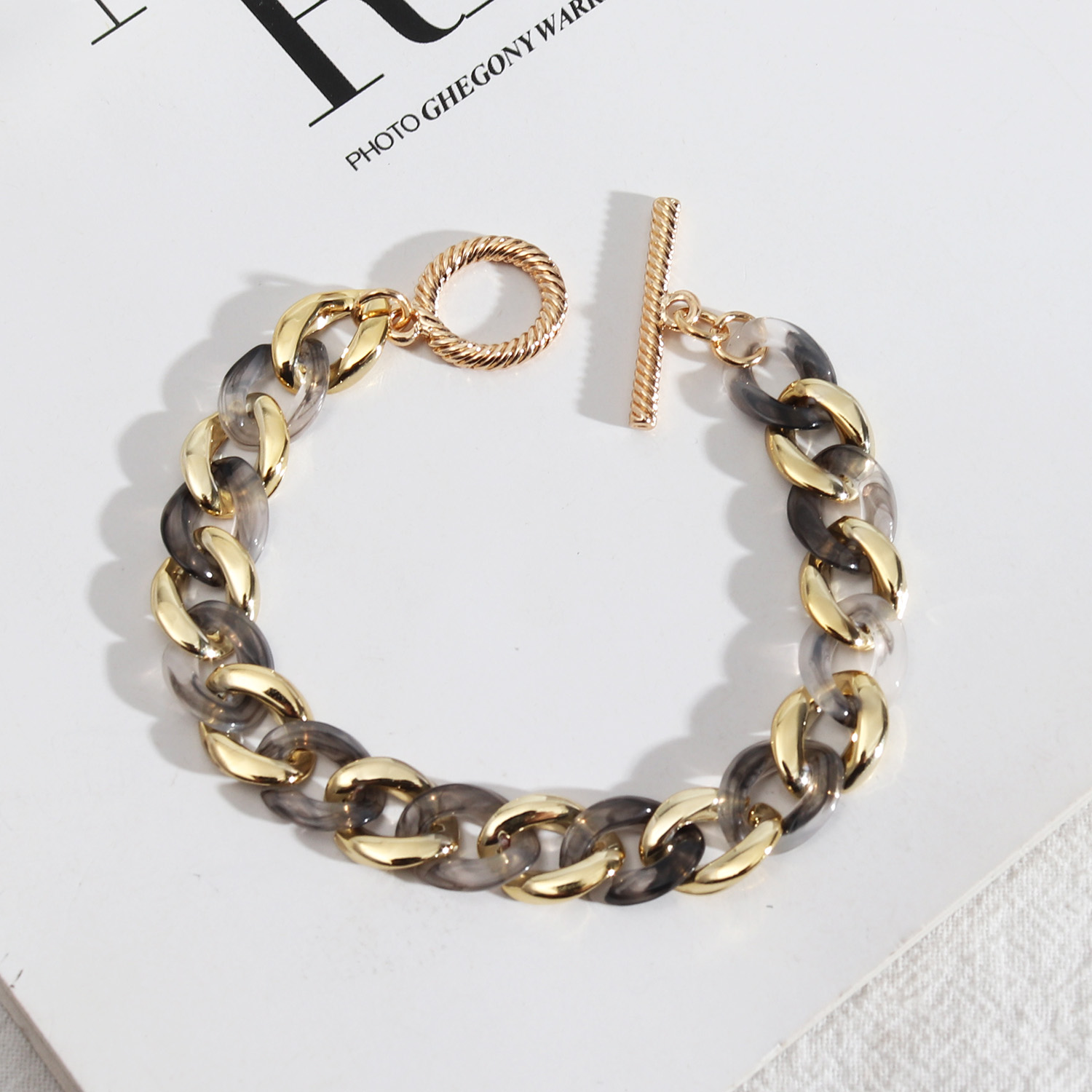 潮流设计开发 欧美风饰品 糖果色树脂扣时尚个性简约百搭手链女