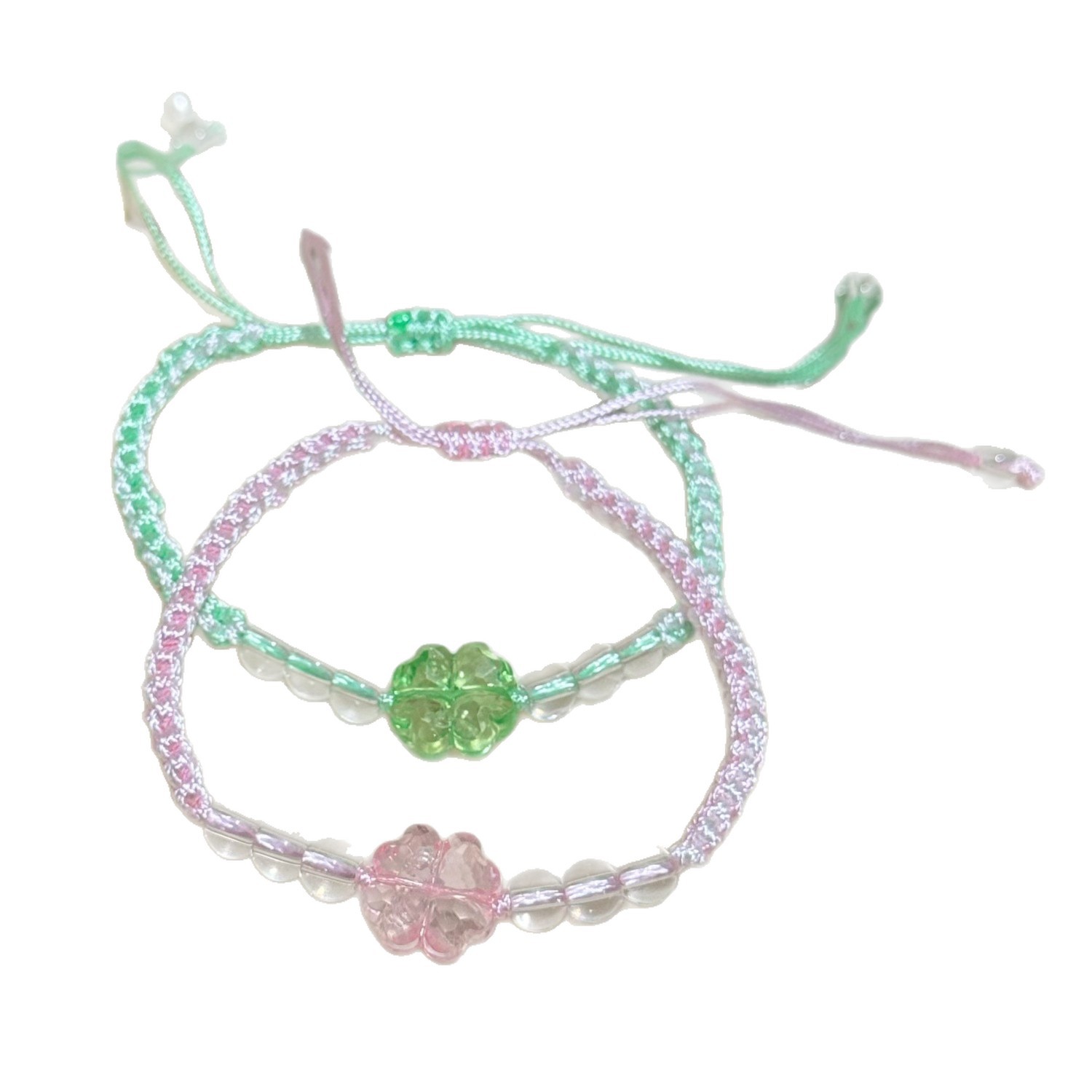 闪闪幸运四叶草原创绿色手链手工编织高颜值手绳送闺蜜女友礼物