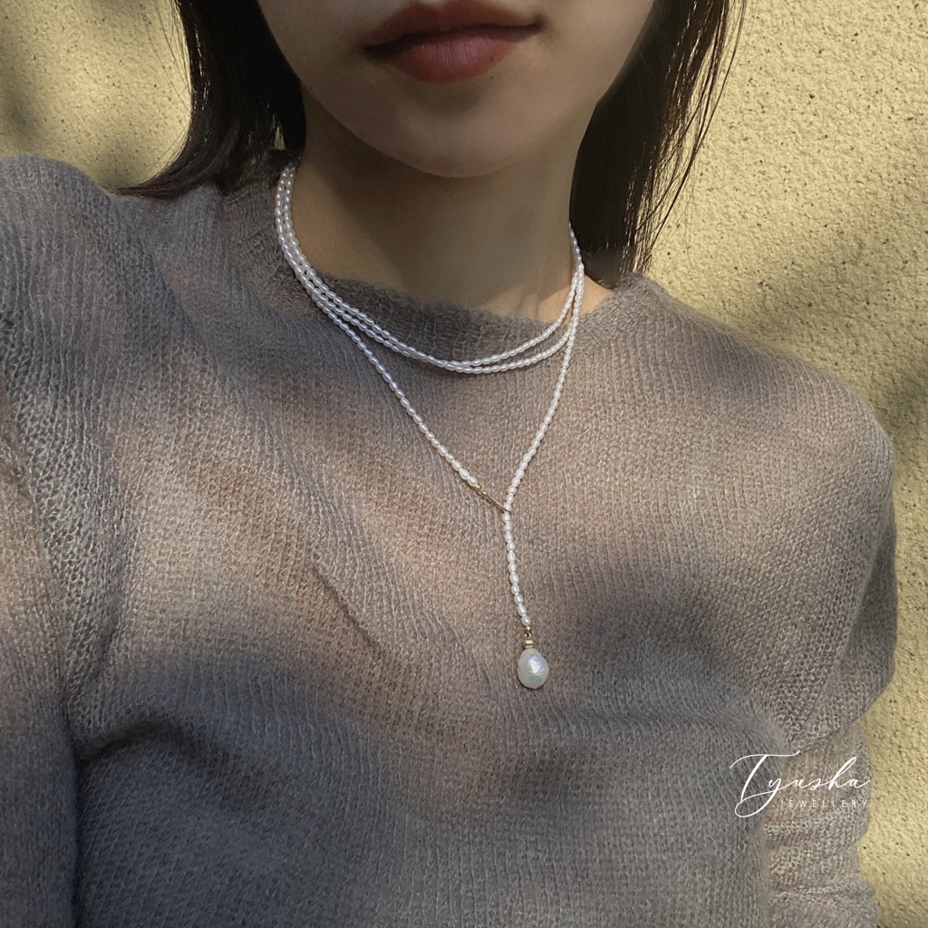 TYUSHA推荐!设计款天然淡水珍珠毛衣链项链长款轻奢小众简约气质