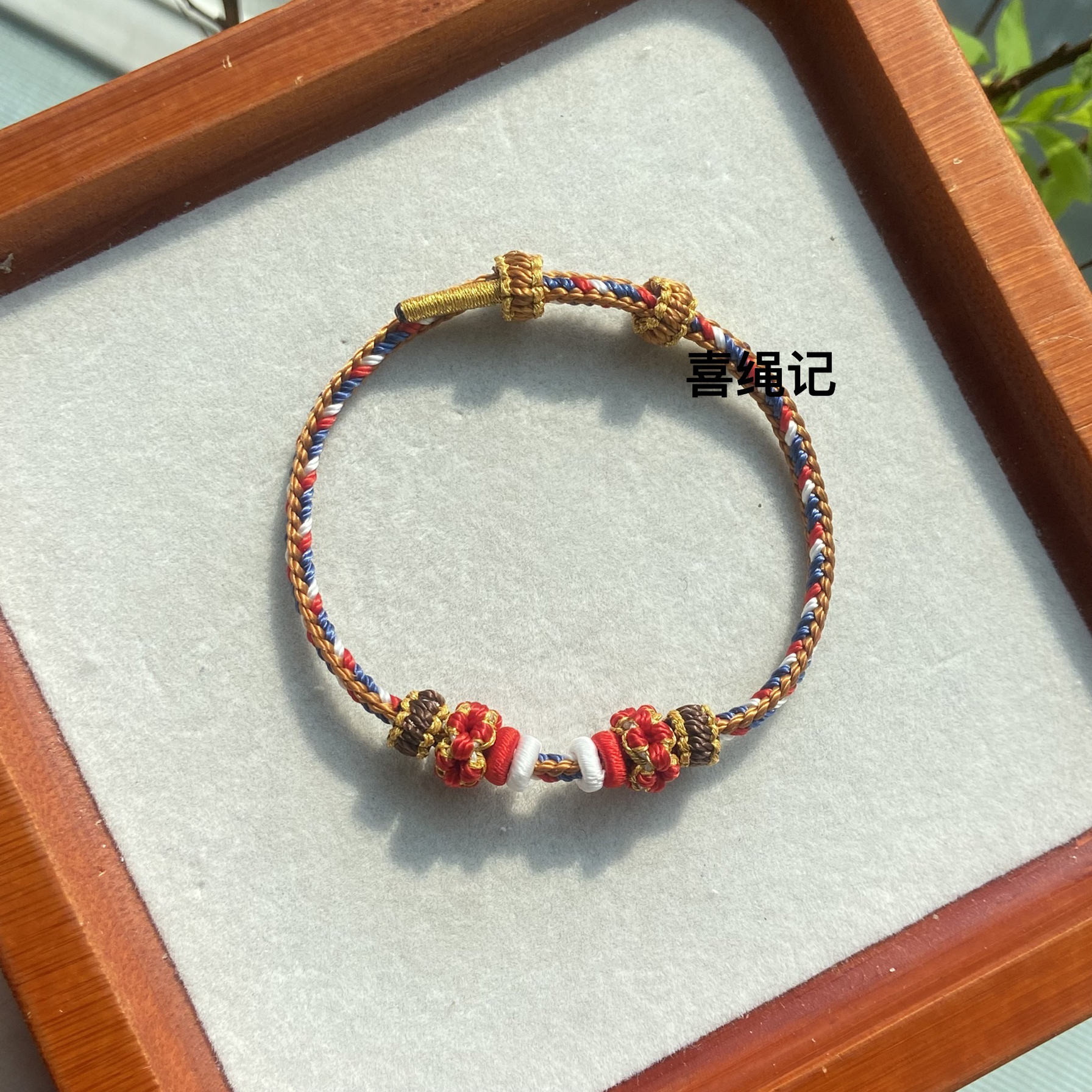 纯手工编织敦煌配色手绳diy本命年男女可穿转运珠醒狮藏式手链