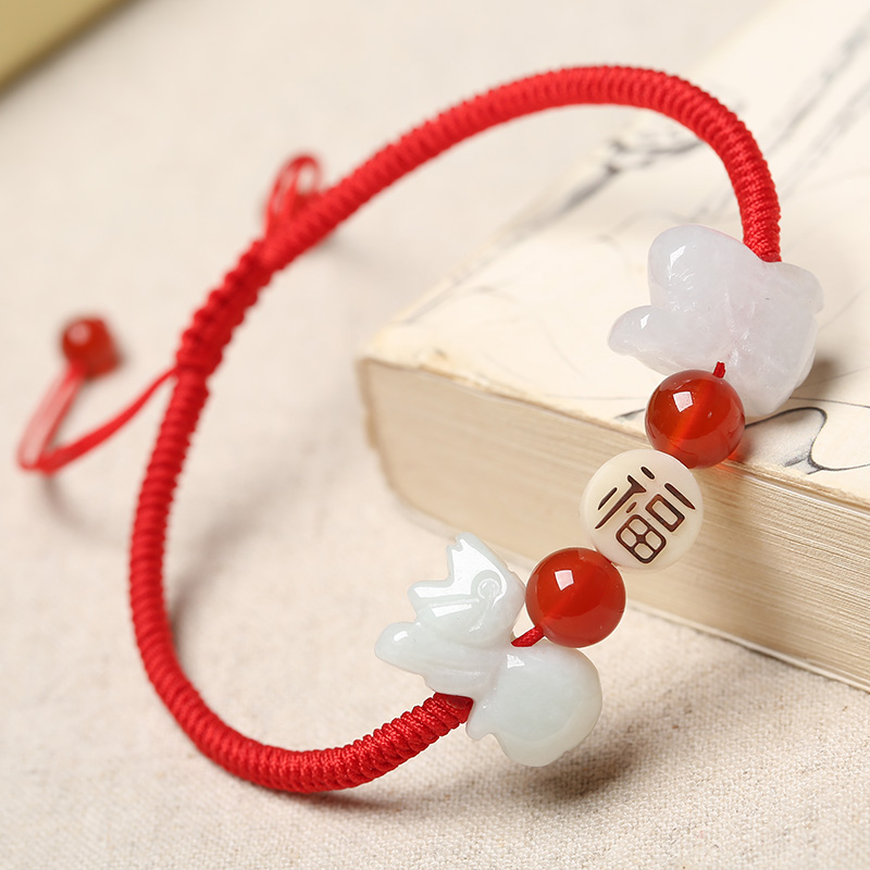 2026年生肖属鼠红绳太岁手链猴鼠龙三合申子辰手链挂件翡翠钥匙扣