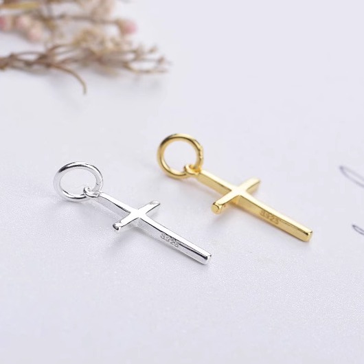 S925纯银精致光面十字架吊坠小挂件DIY水晶手链锁骨链项链银饰