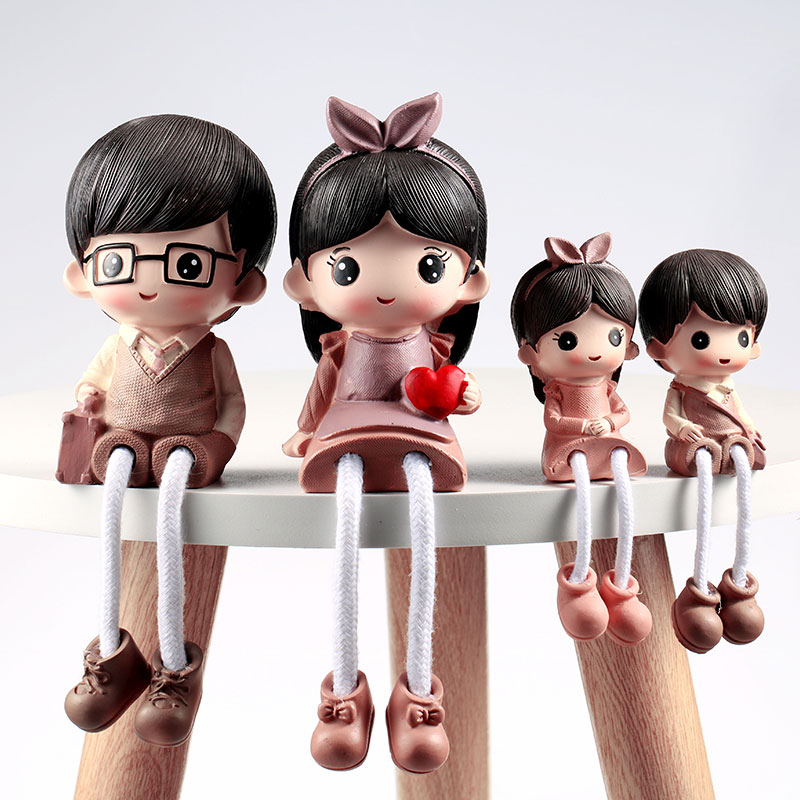 客厅电视柜婚庆装饰礼品小摆件四口卡通吊脚娃娃创意家居装饰摆件