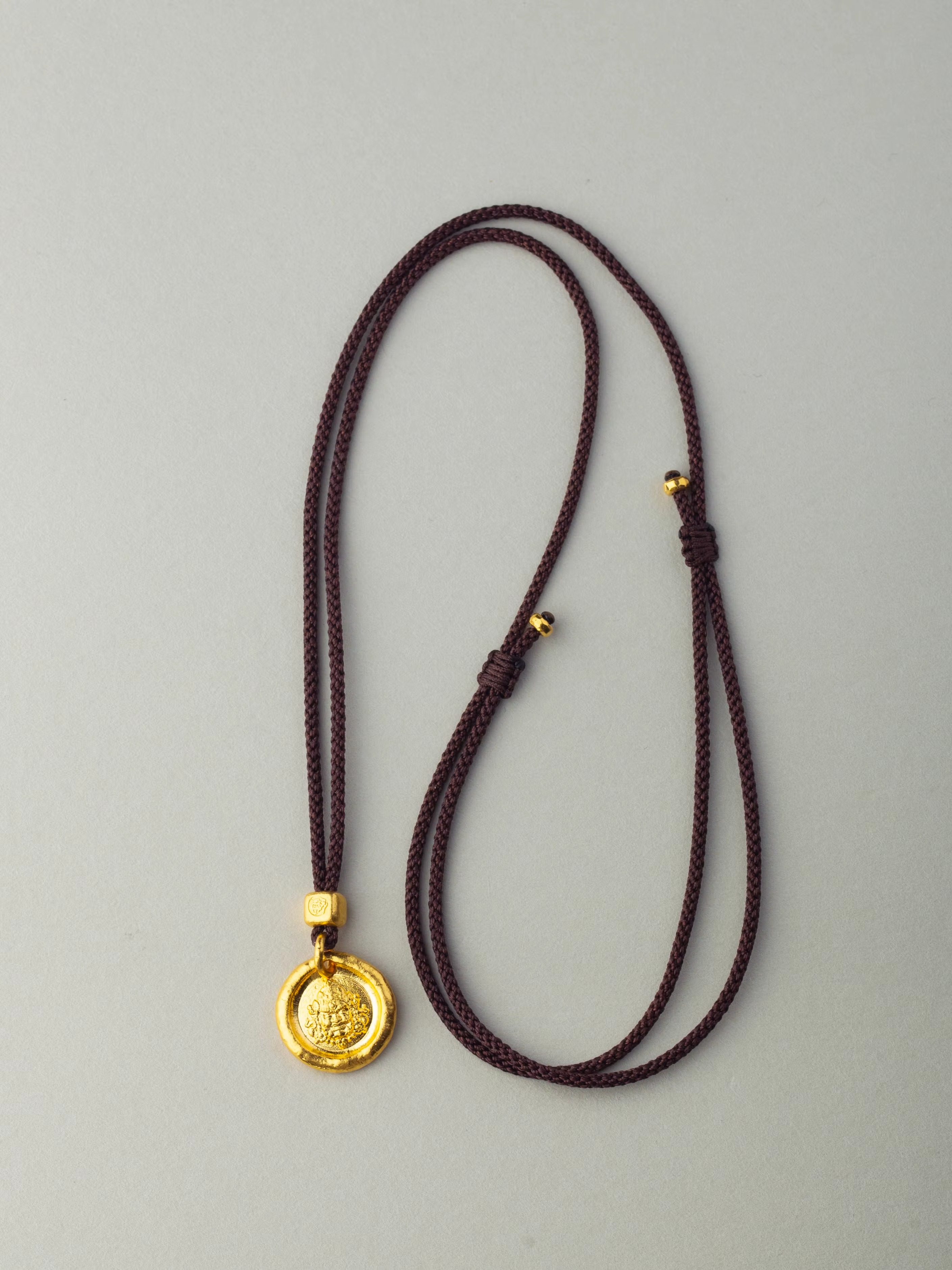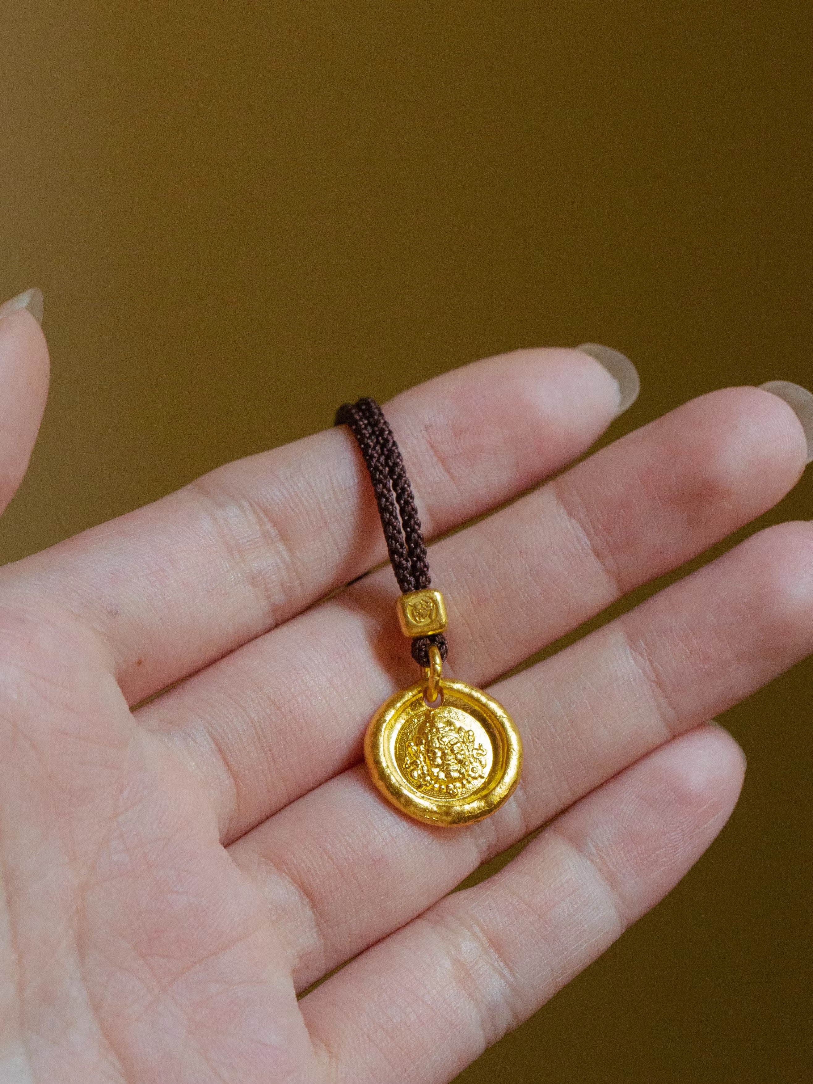 古法黄财神项链黄金色吊坠配饰编织绳子高级设计感送男女朋友礼物