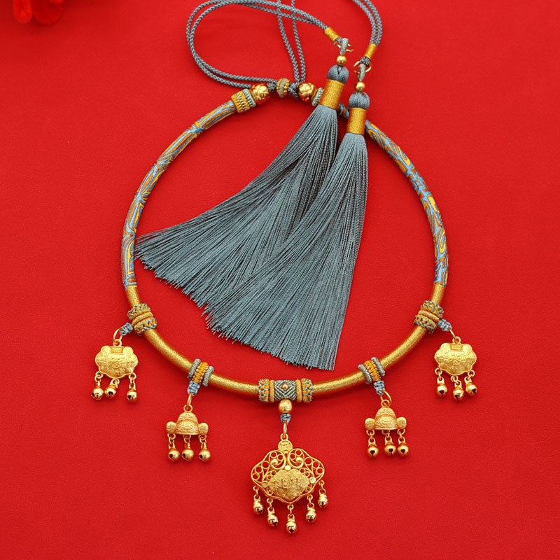宝宝项圈婴儿百天抓周国风项链金锁编绳儿童编织红绳满月周岁送礼