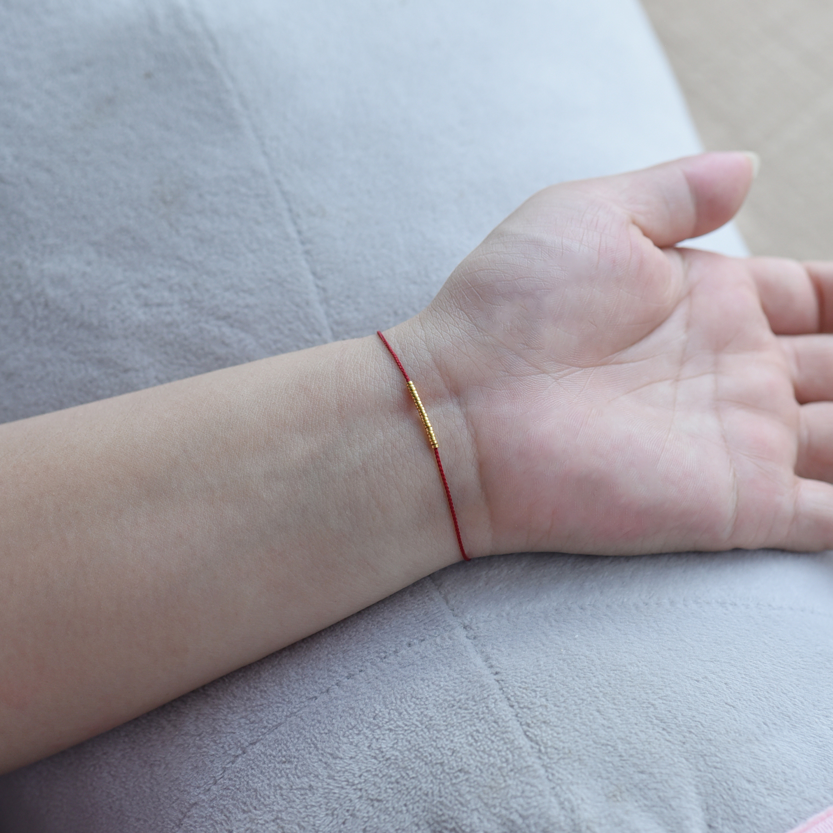 巨细纯手工编织24K黄金999足金极小隔片本命年红绳手链脚链男女