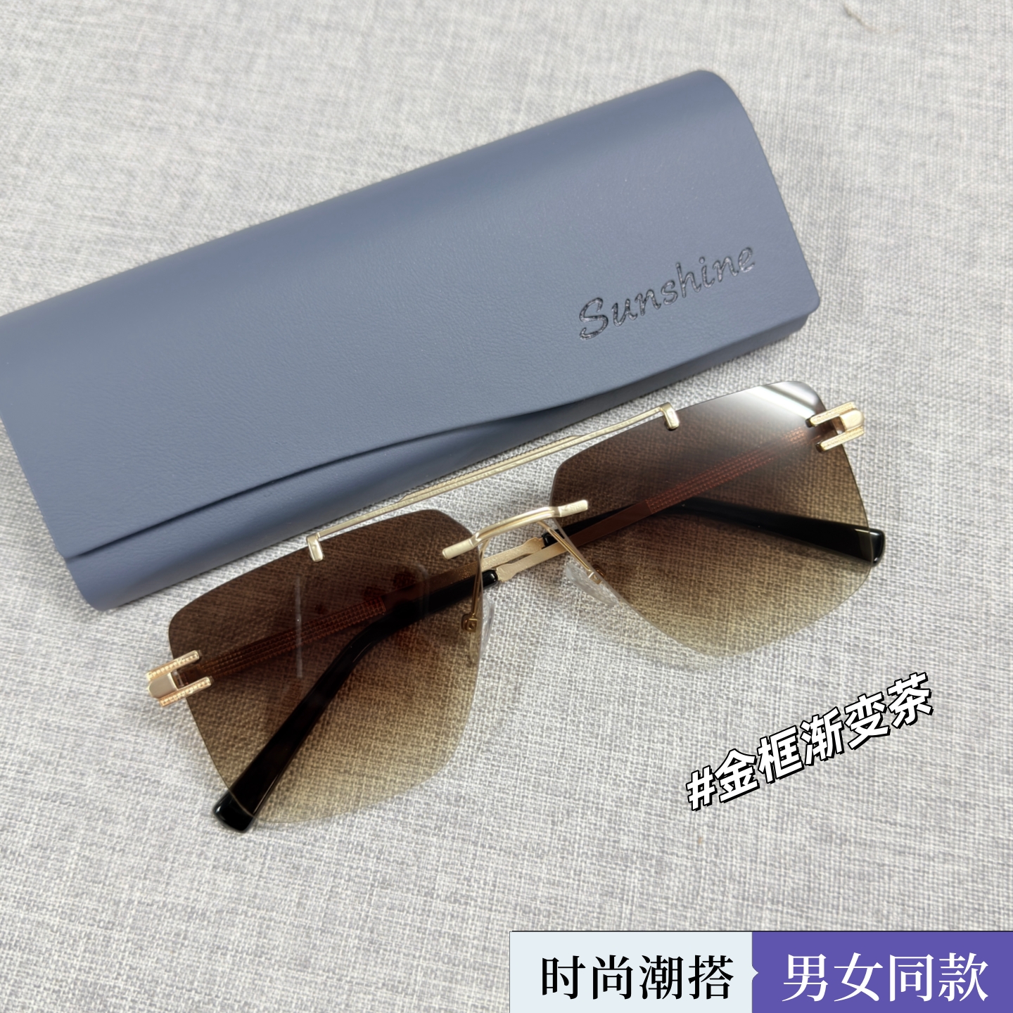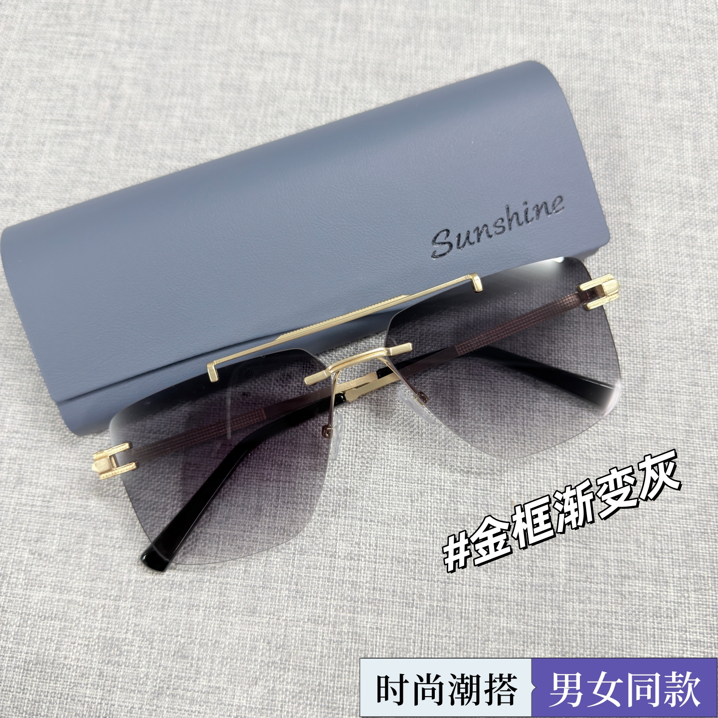 无框墨镜女高级感大脸防紫外线圆脸防紫外线太阳眼镜2025新款男潮