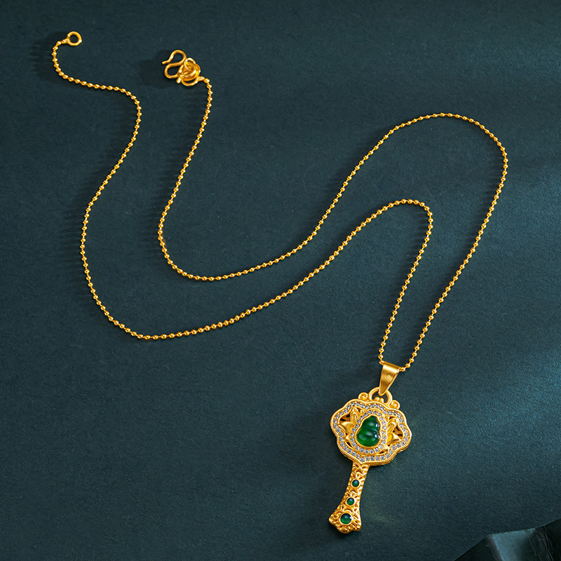 国风新款玛瑙葫芦如意越南沙金吊坠镂空花丝如意挂坠满满招财项链