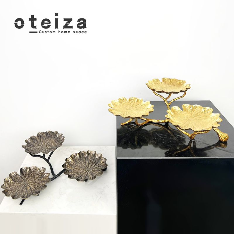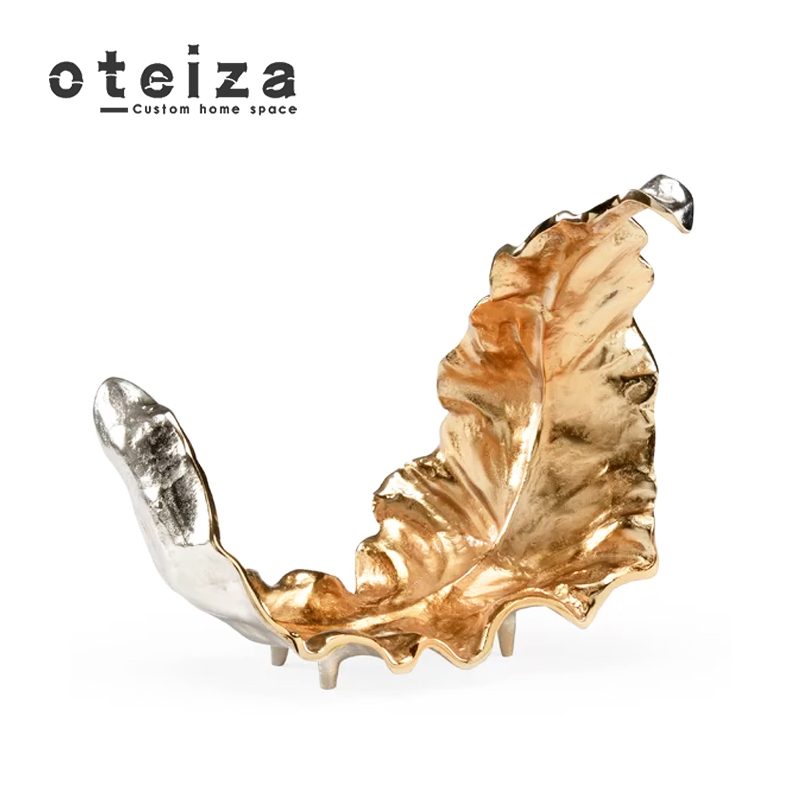 Oteiza现代轻奢金属树叶水果盘金色欧式软装弯月形摆件客厅收纳盘