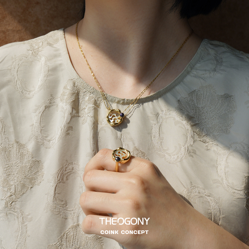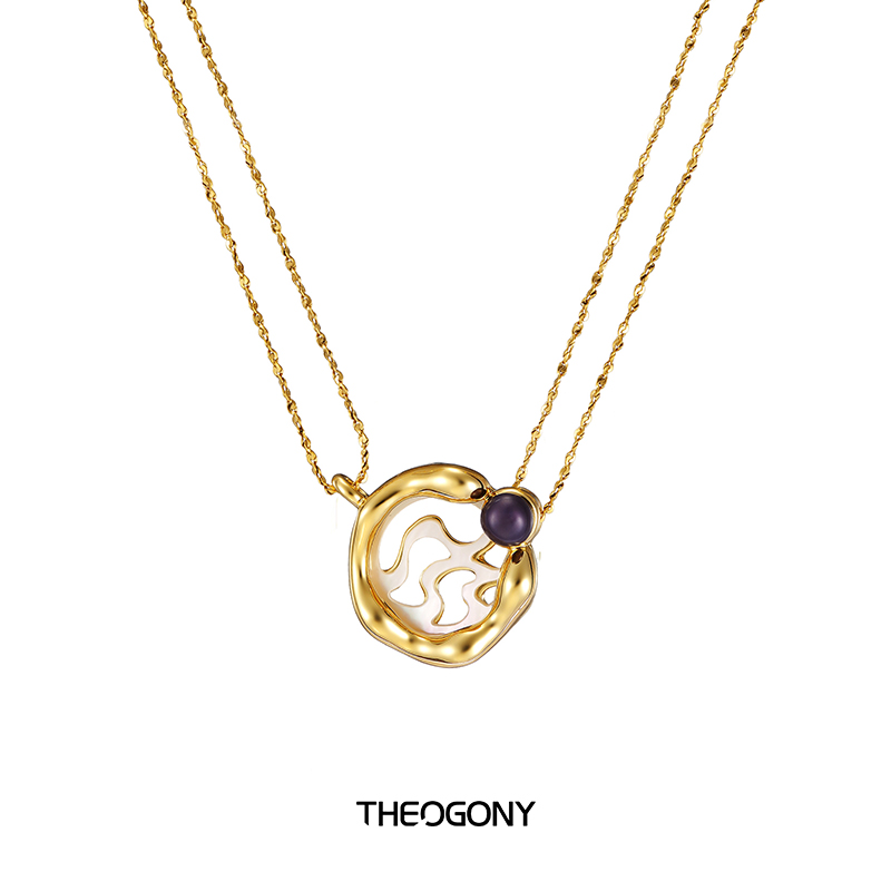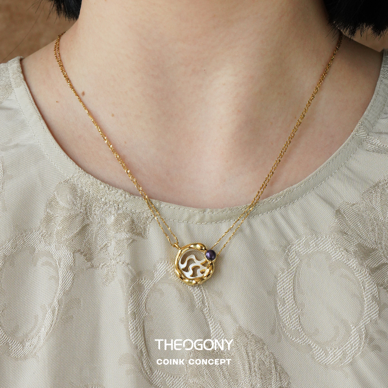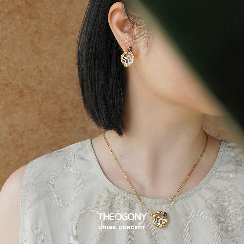 THEOGONY 古币系列 水波纹贝母镶嵌珍珠项链 原创设计复古锁骨链1