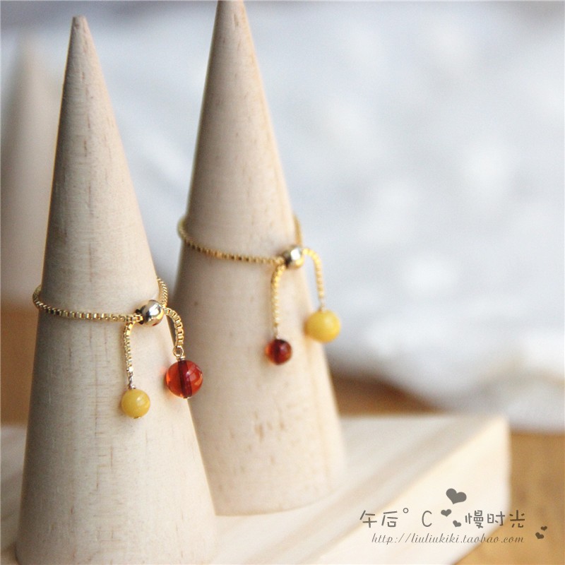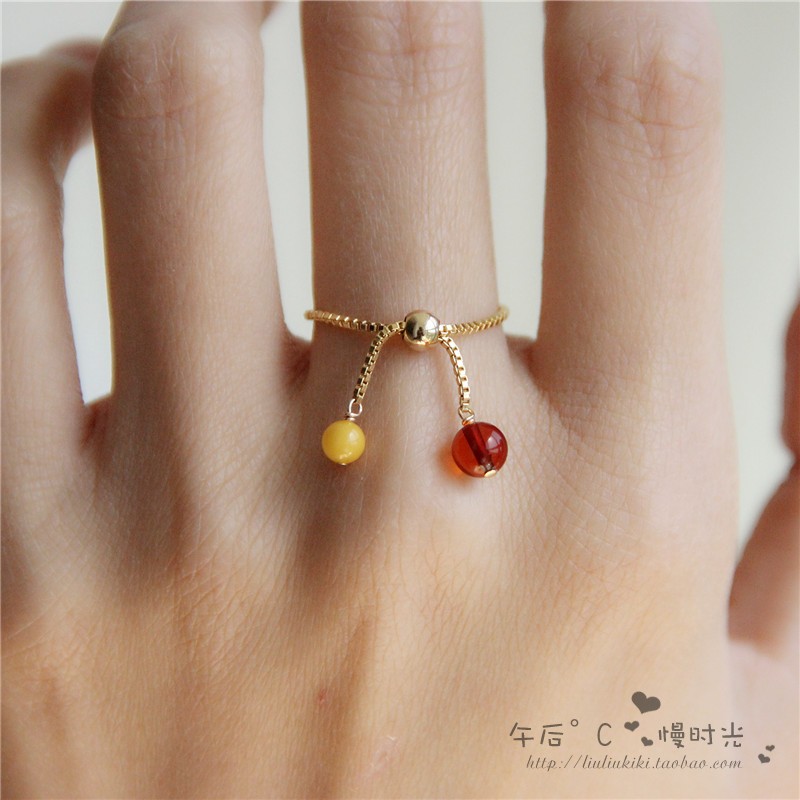 【新品包邮】天然蜜蜡戒指女 琥珀戒指 血珀戒指开口戒指14k包金
