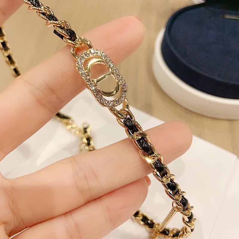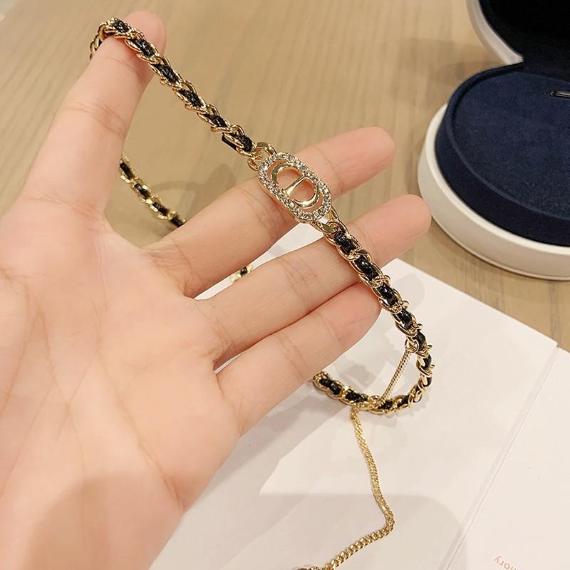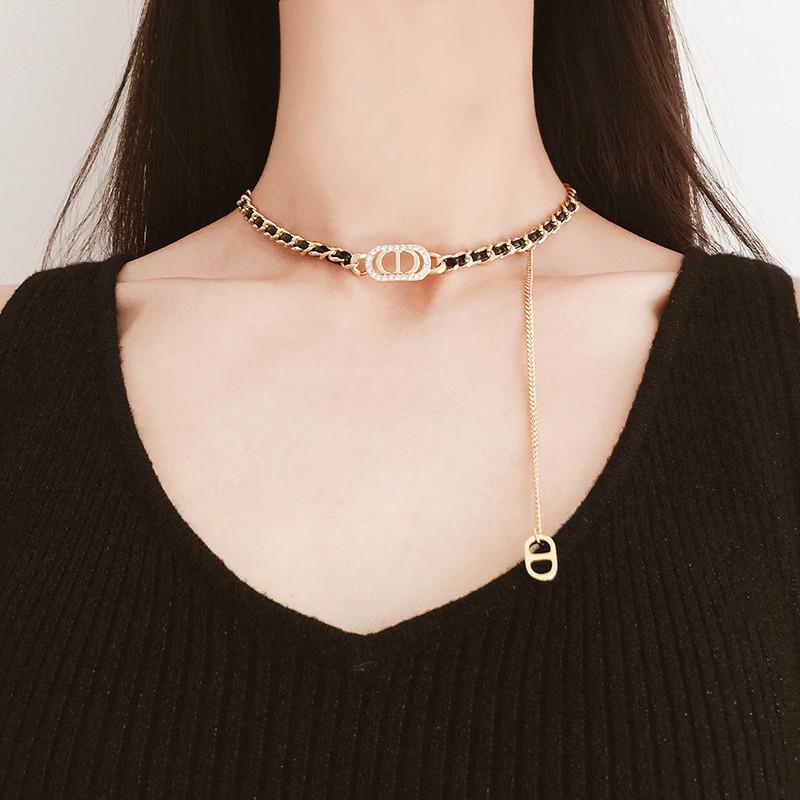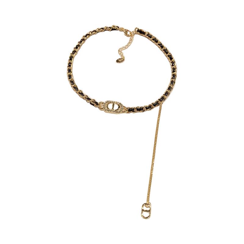 小香风字母项链女法式轻奢高级感编织颈链百搭黑色皮绳choker项圈