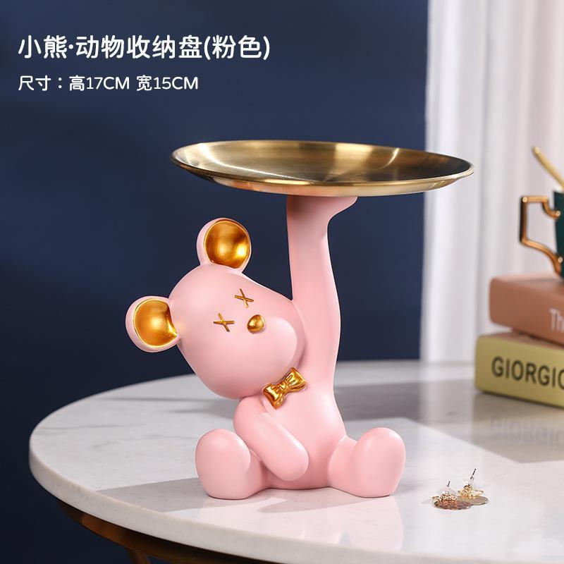 创意糖果盘子前台零食摆放盘熊摆件客厅茶几干果水果盘高级感