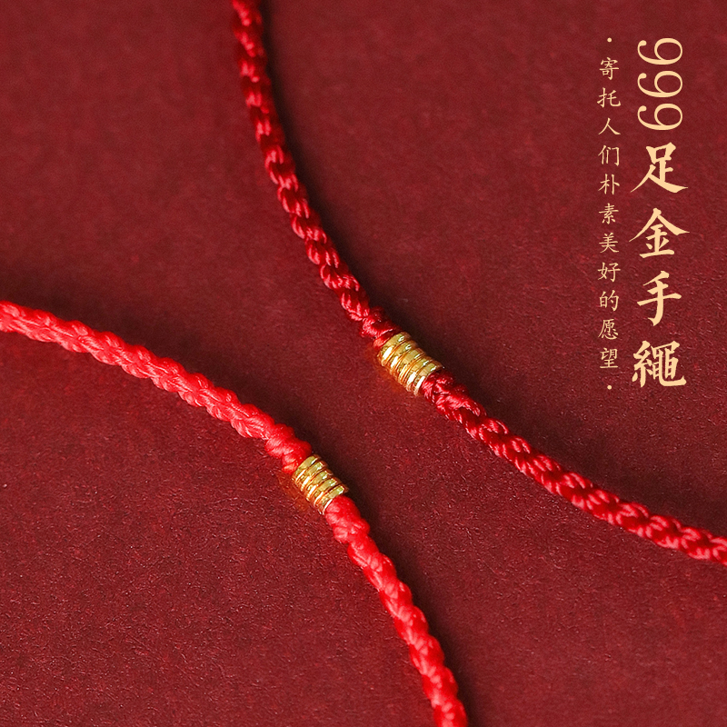 999足金红绳手链女黄金转运珠马年本命年编织绳红色手绳礼物情侣