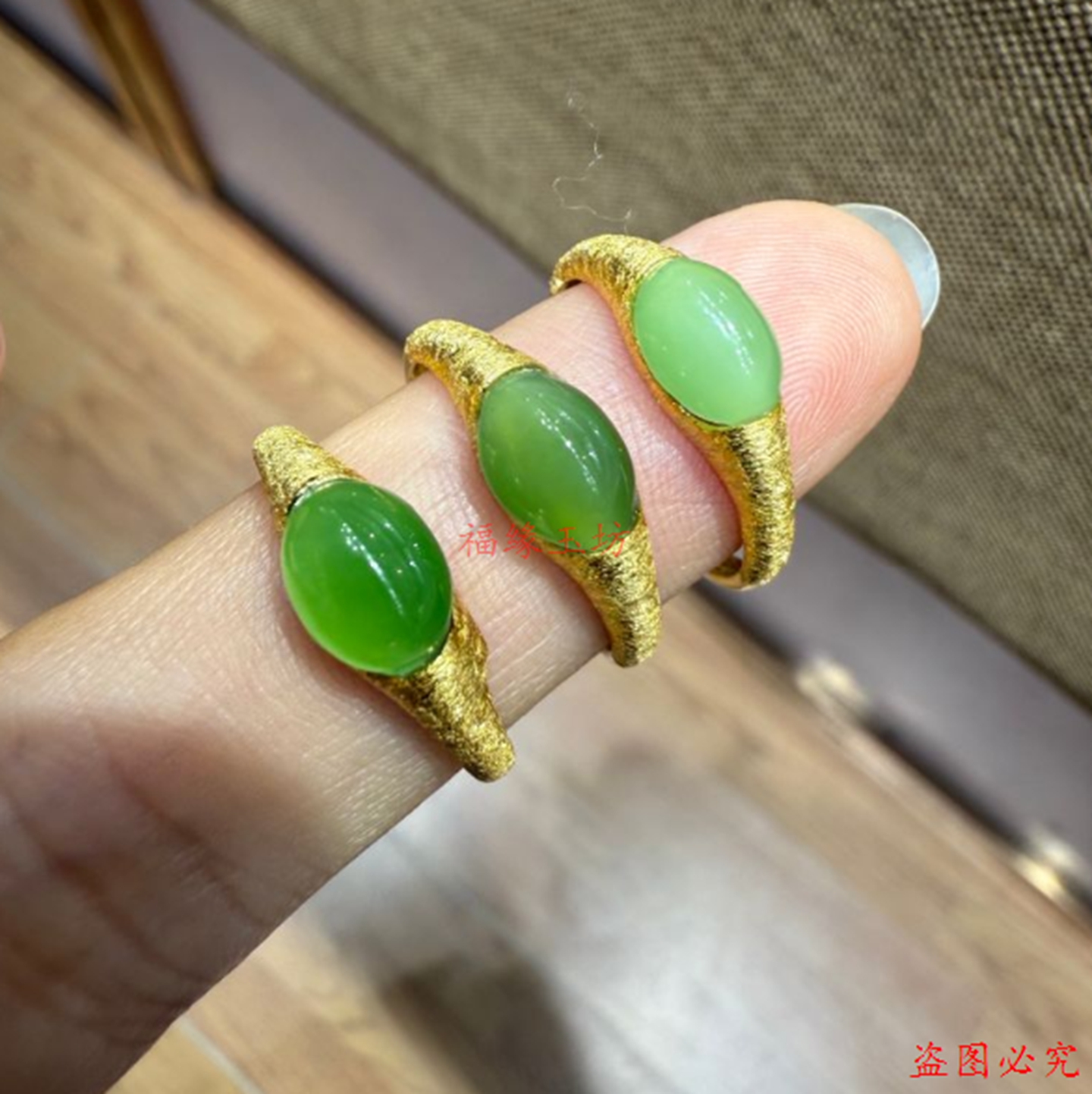 精美和田碧玉戒指925银开口指环可调节高级感百搭绿色碧玉