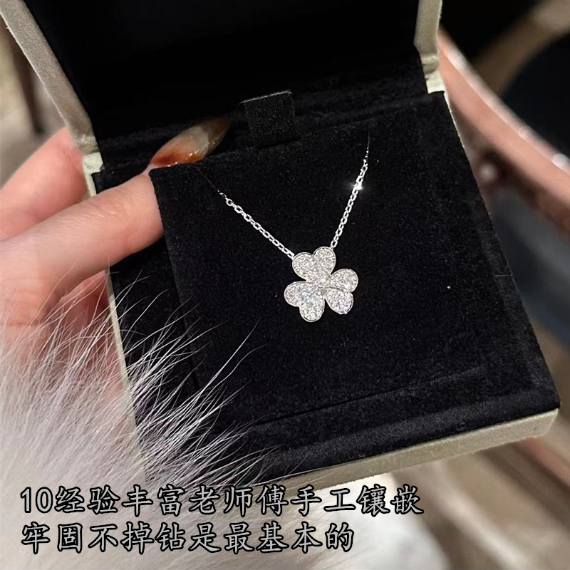 摩登圣饰幸运草系列S925纯银项链满钻三叶草锁骨链送女友生日礼物