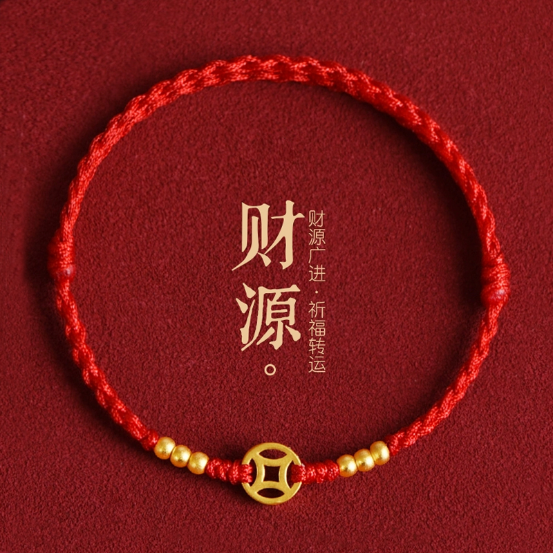 2024年本命年红绳手链女黄金转运珠招财红色手绳编织绳男情侣脚链