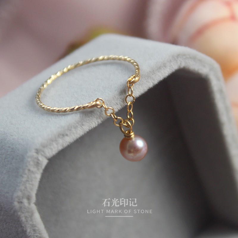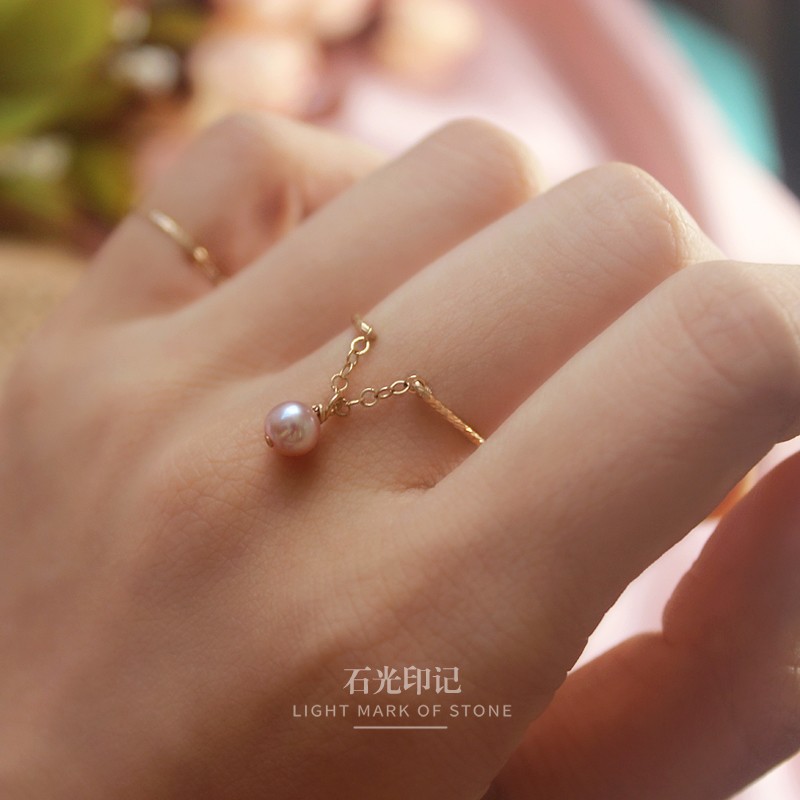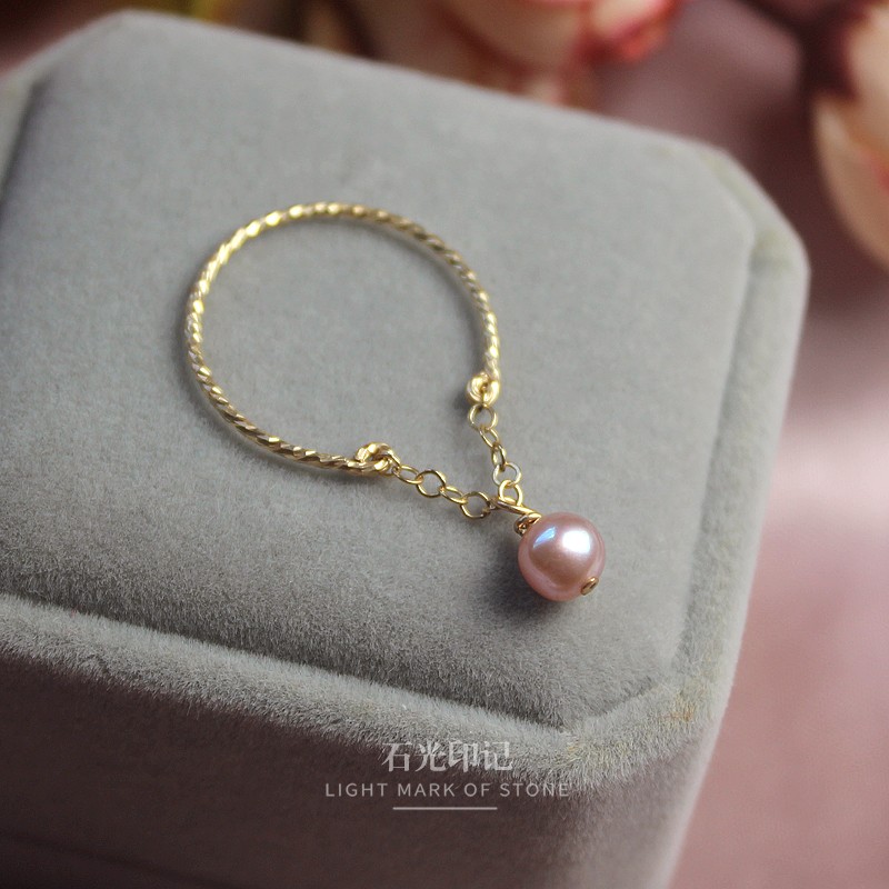 石光印记天然淡水珍珠女士戒指手工订制指环可调节14K注金不褪色