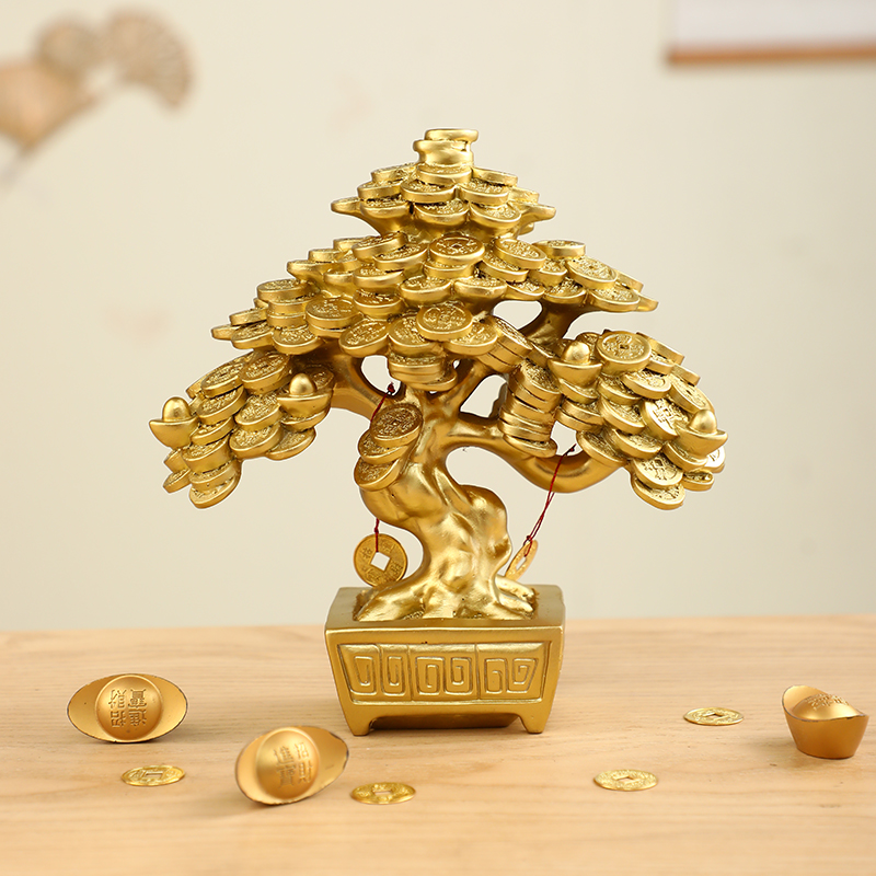 铜钱发财树招财摆件客厅前台酒柜玄关摇钱树装饰乔迁新居开业礼品