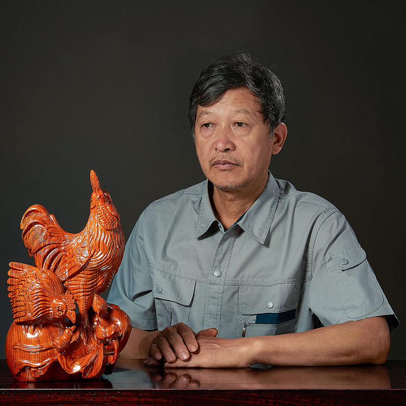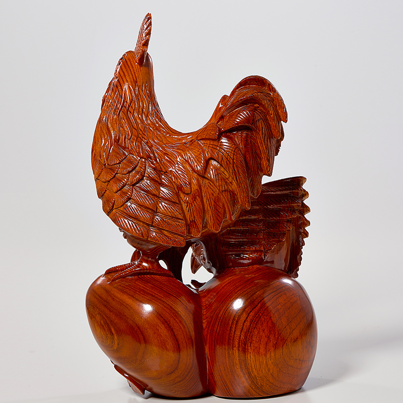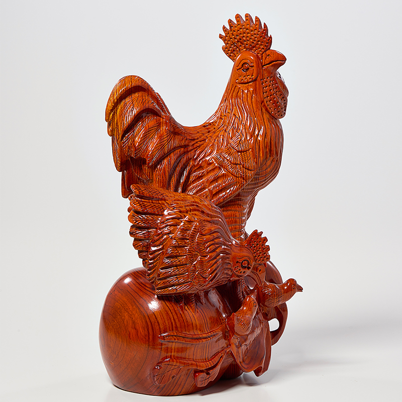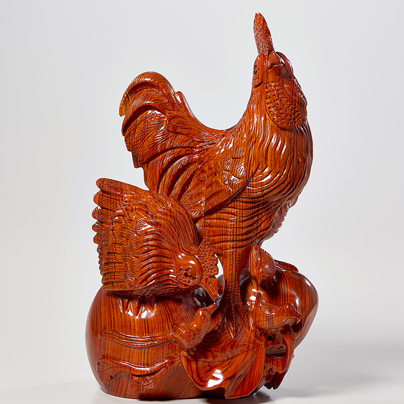 花梨实木雕刻全家福摆件木头根雕十二生肖公鸡母鸡创意家居装饰品