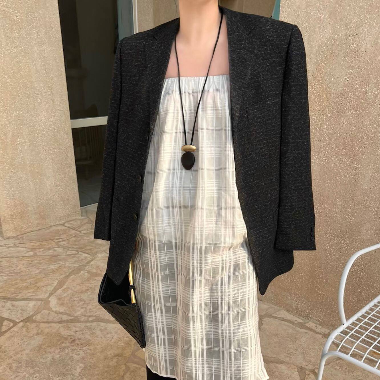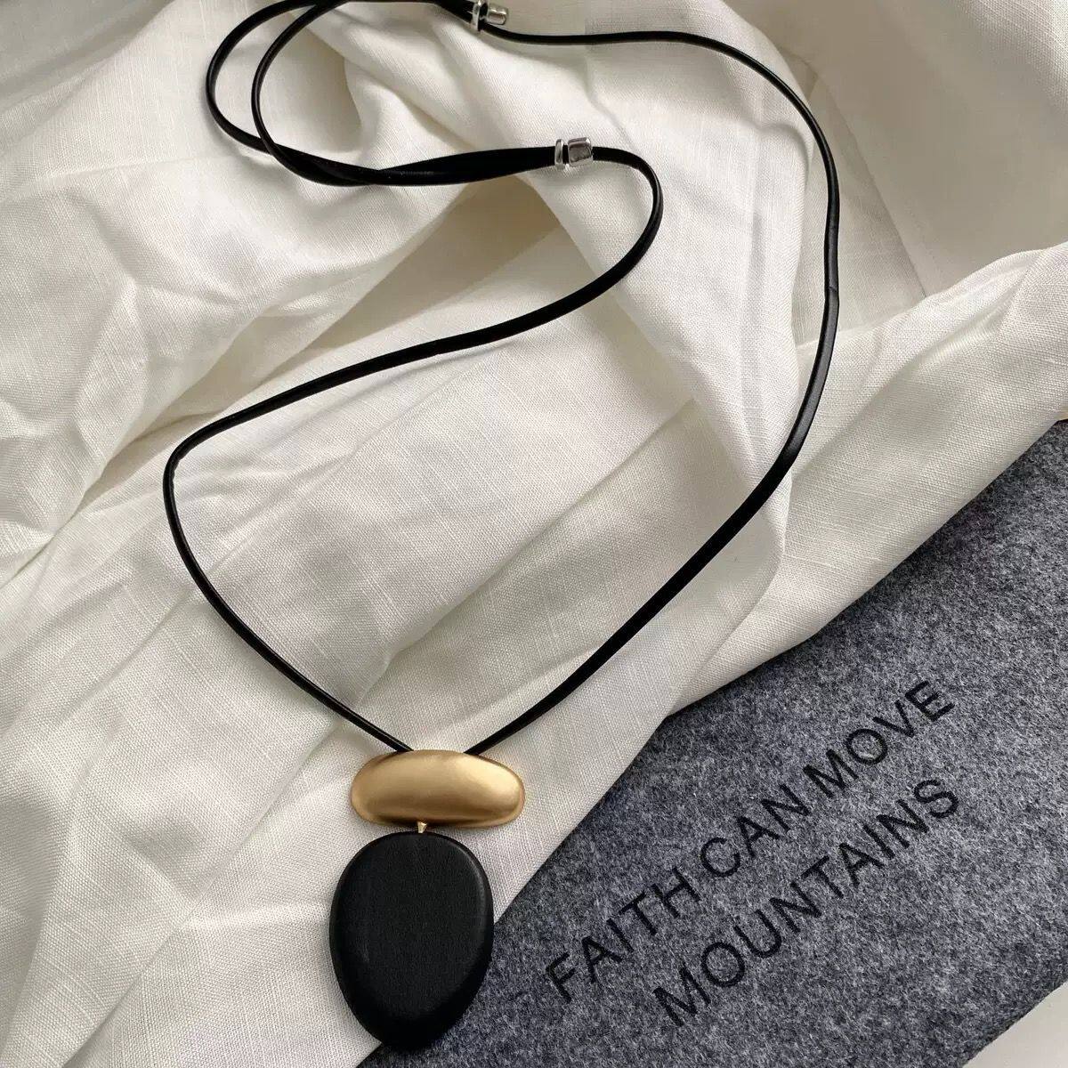 黑色皮绳长款项链女轻奢小众高级感新中式新款锁骨链毛衣链配饰