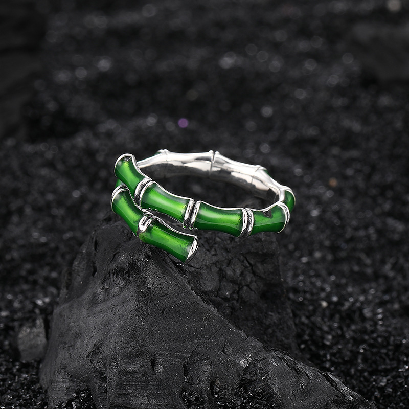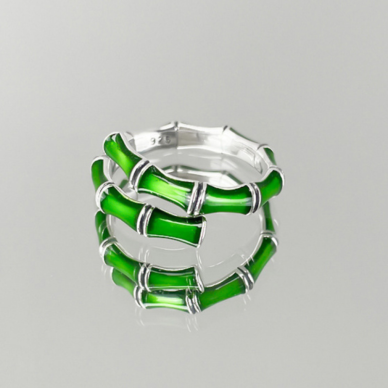 绿色竹节戒指女小众时尚设计感文艺百搭奢华感开口珠子戒指
