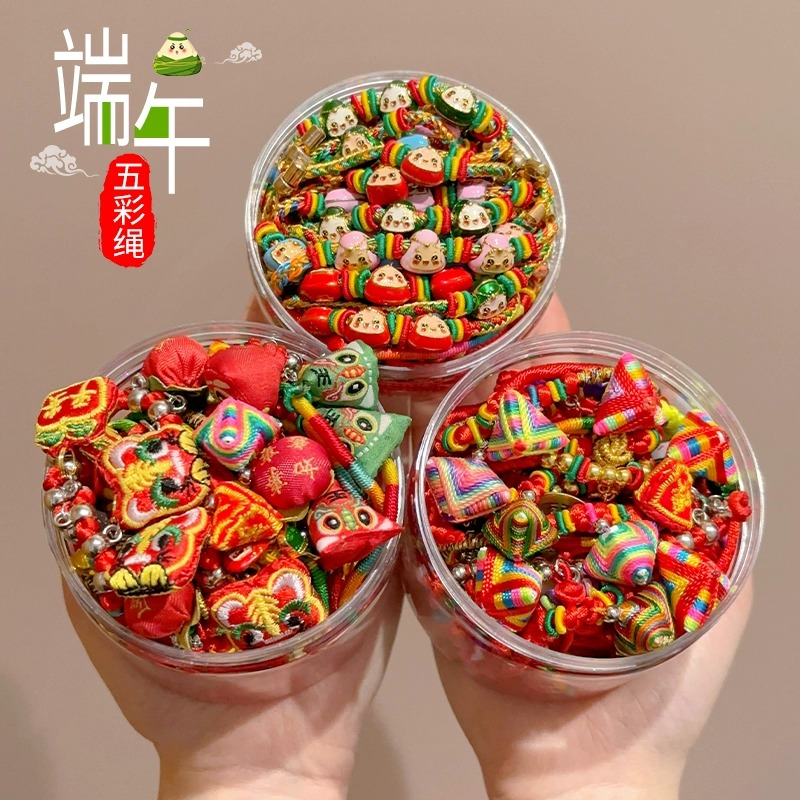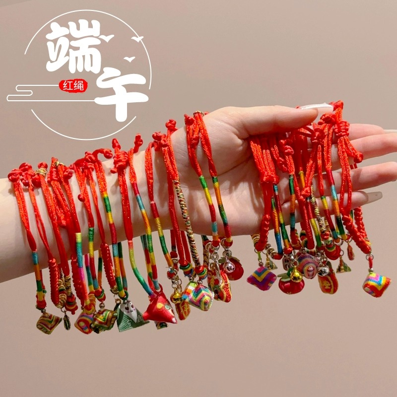 端午节五彩绳批发儿童手链婴儿宝宝手工编织绳小粽子红色手绳手串