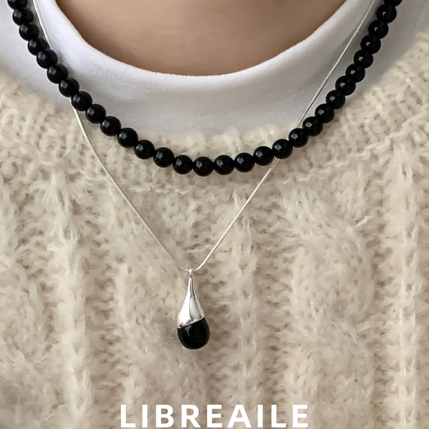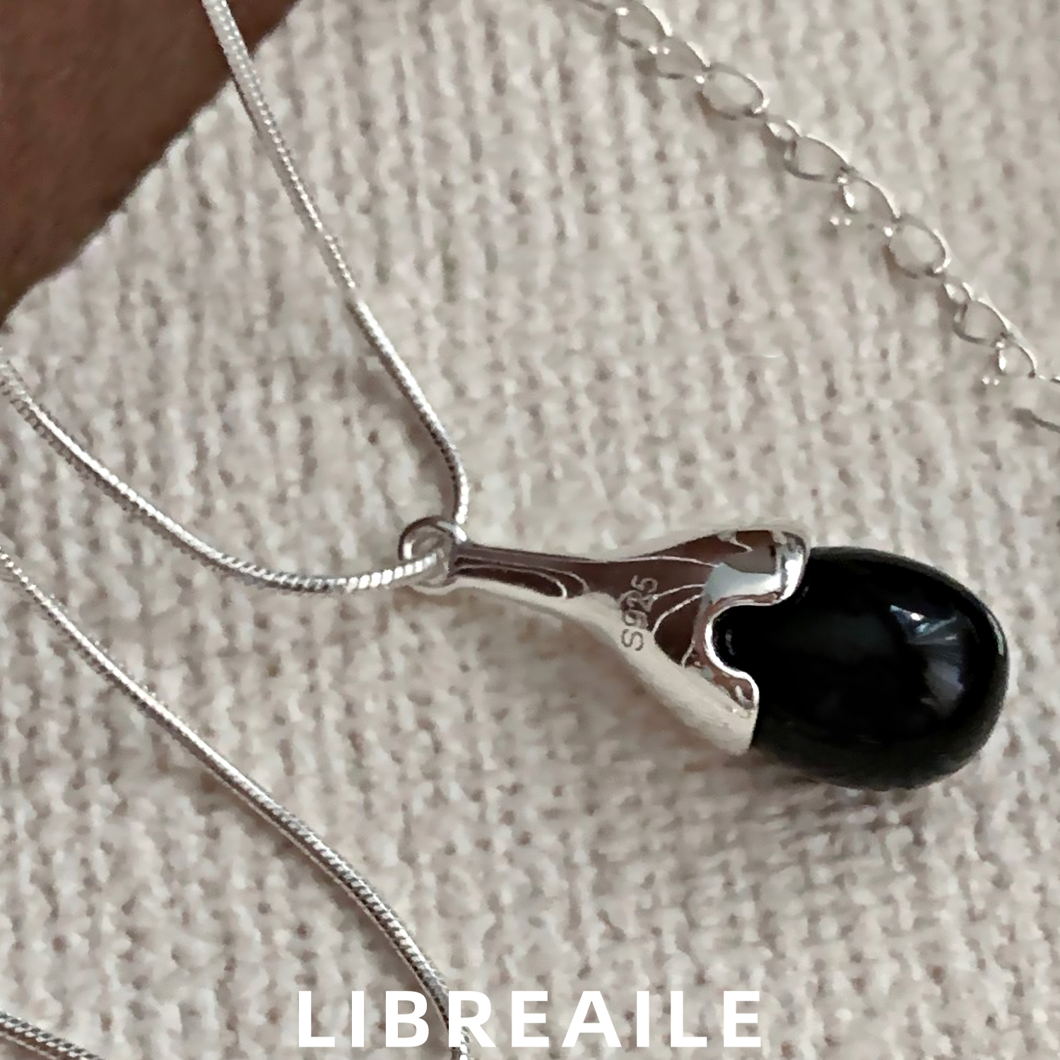 LIBREAILE小众高级感简约冷淡风黑色水滴耳环女925纯银耳钉黑玛瑙