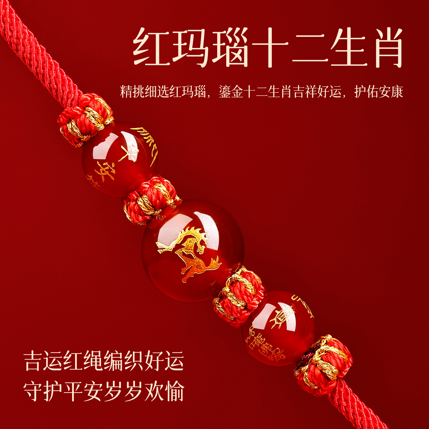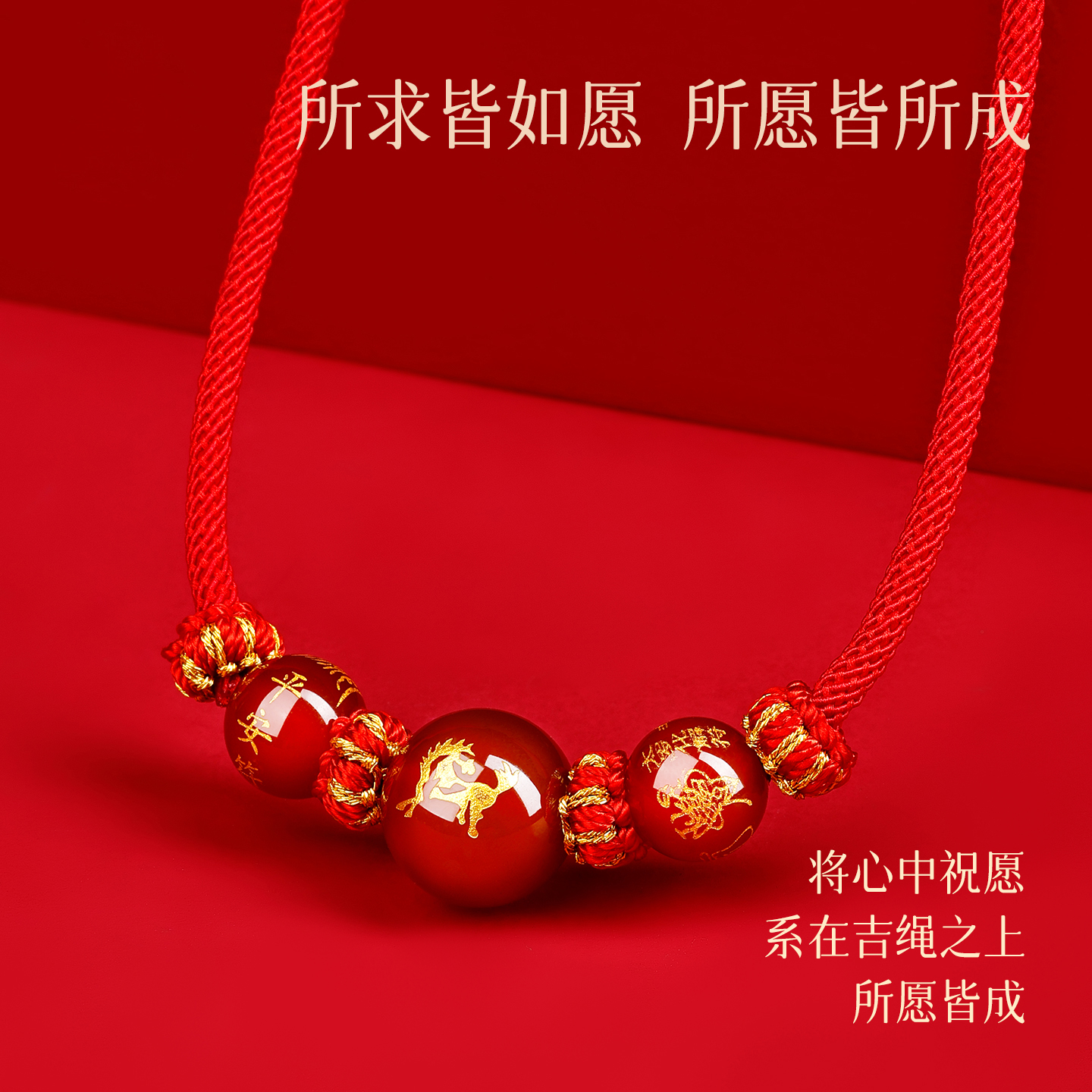 2026属马本命年挂件太岁红绳挂脖马年红色编织绳平安挂绳项链男女