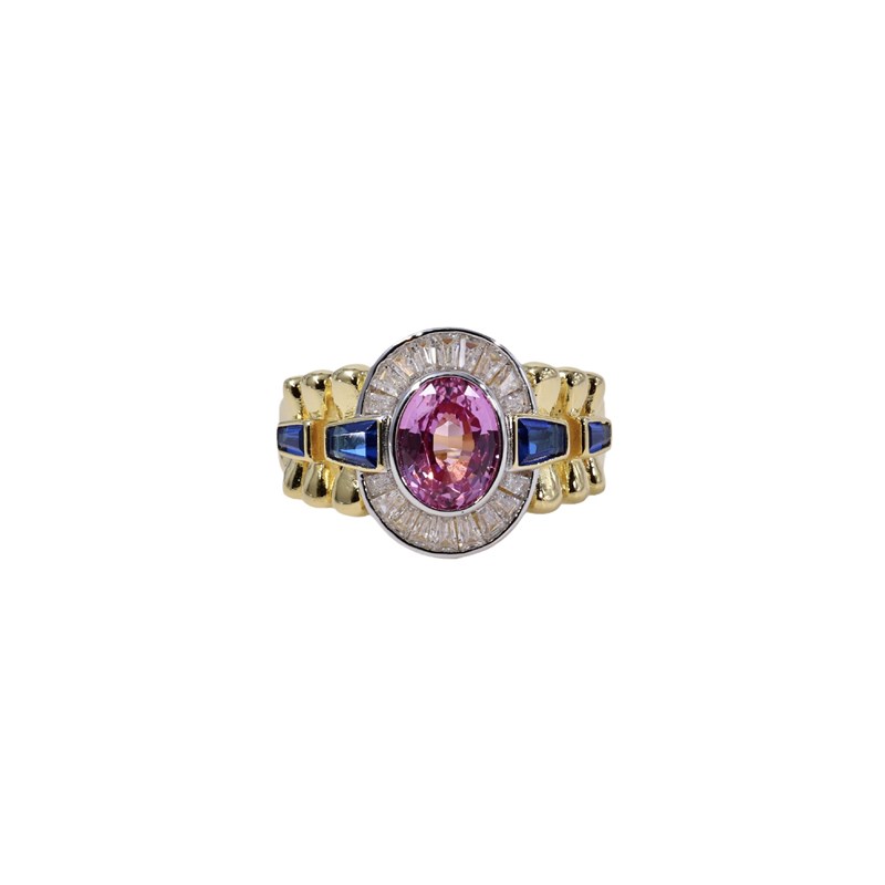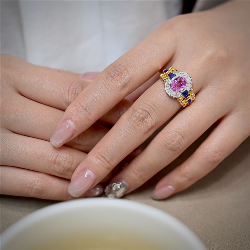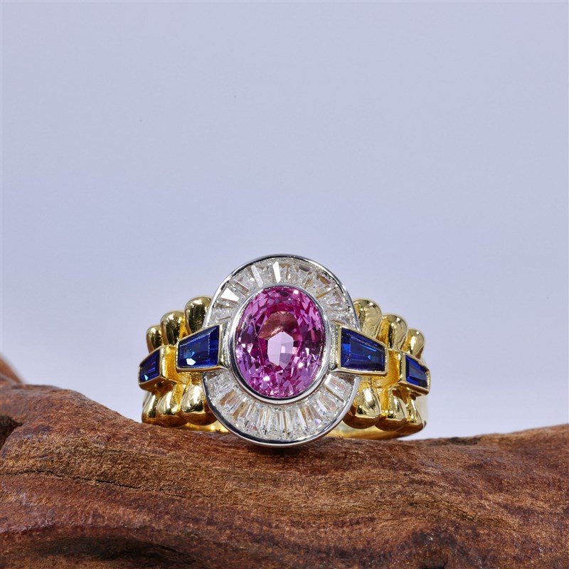 1.6ct培育粉蓝宝石轻奢时尚法式戒指女戒T方钻S925银镀金工厂定制