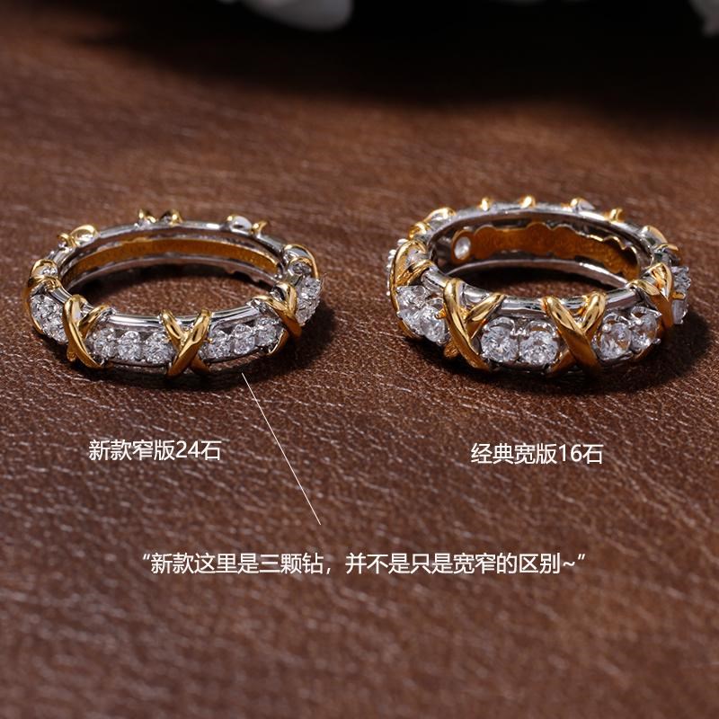 新款窄版16石戒指24p石满钻排钻对戒男女情侣交叉X系列双色银镀金