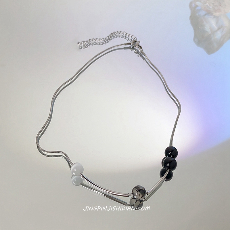 晶品钛钢不掉色ins小众设计感黑曜石珠子简约不对称冷淡风项链女