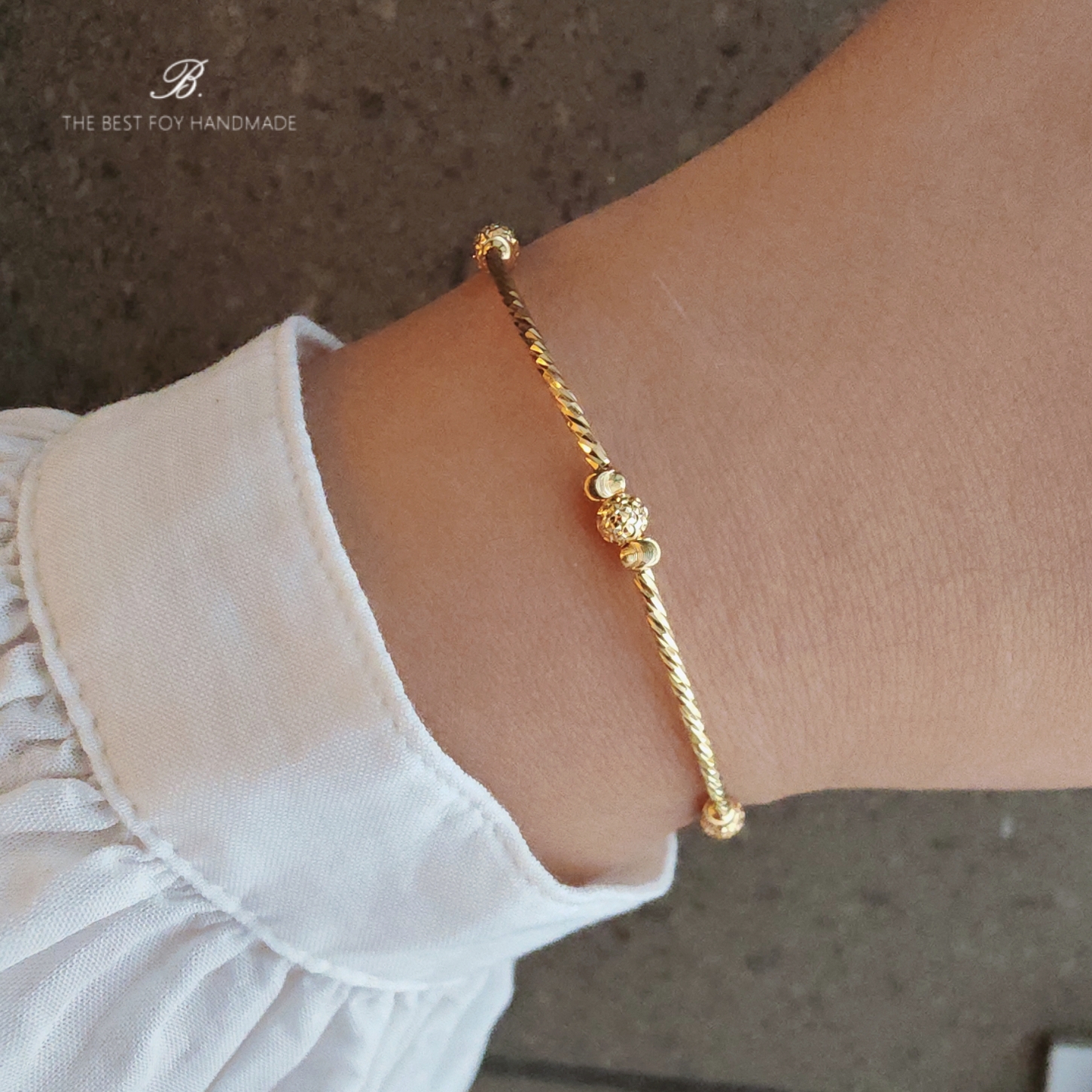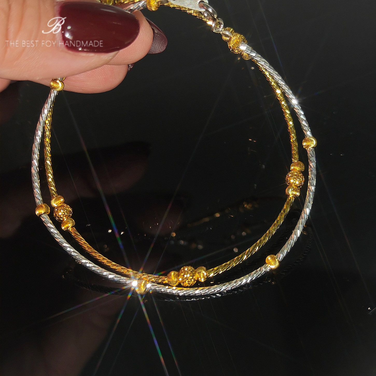 原创手作 通体纯银黄金色爆闪猫眼蹦迪珠软手镯手链女高级感小众