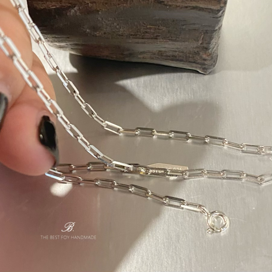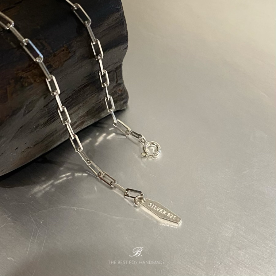 意大利精工925纯银长方链极简风锁骨链项链女欧美风高级小众防敏