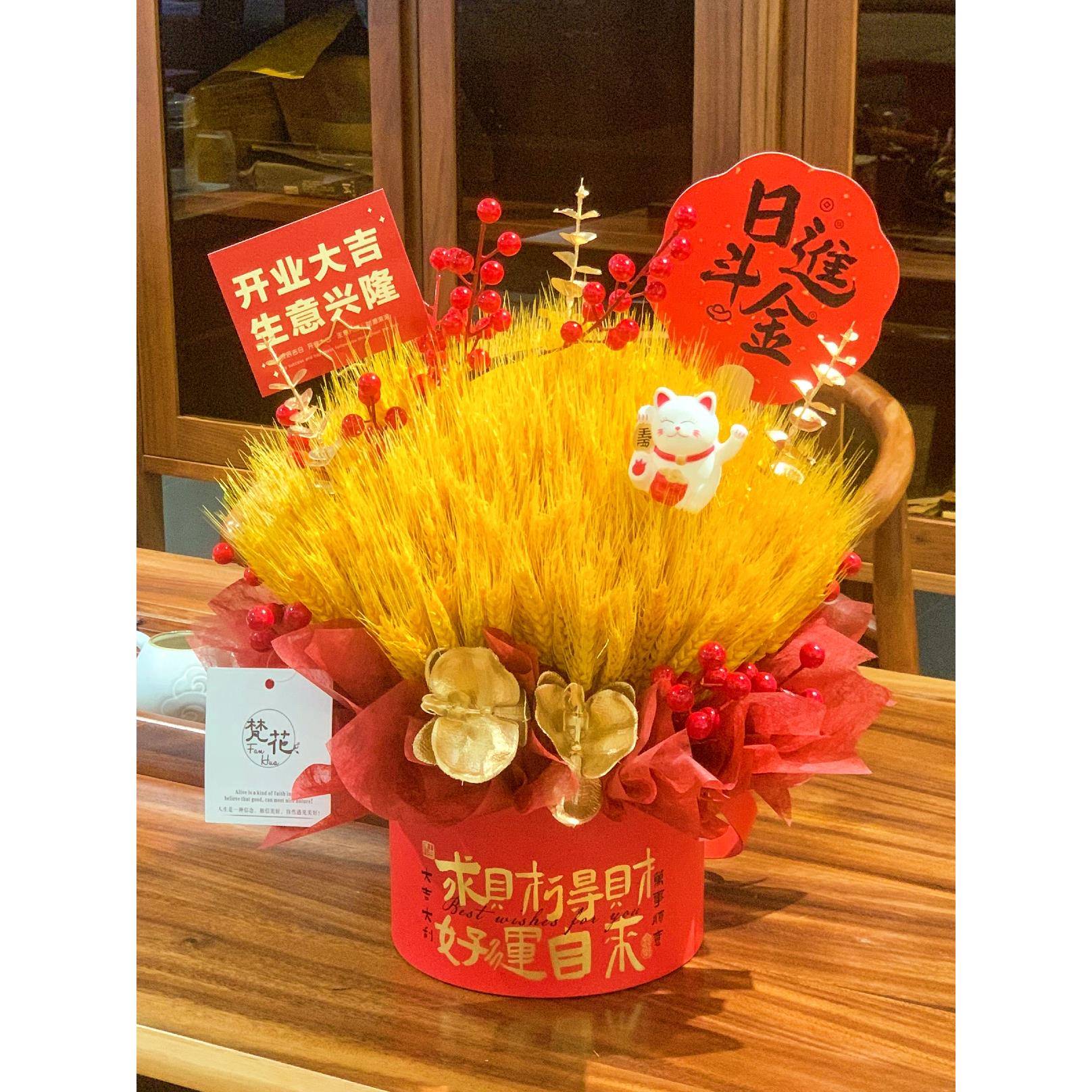 金黄色大麦麦穗抱抱桶开业花篮花束装饰桌面摆件前台开张大吉礼物