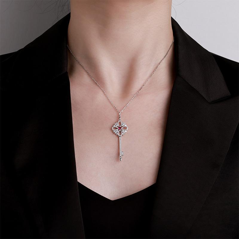 甄选925纯银幸运钥匙项饰个性化太阳花款高级感微镶锆石项链
