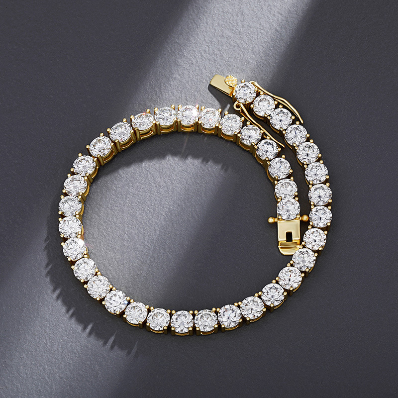925纯银莫桑石欧美跨境个性潮男女高端嘻哈ins单排网球链手链项链