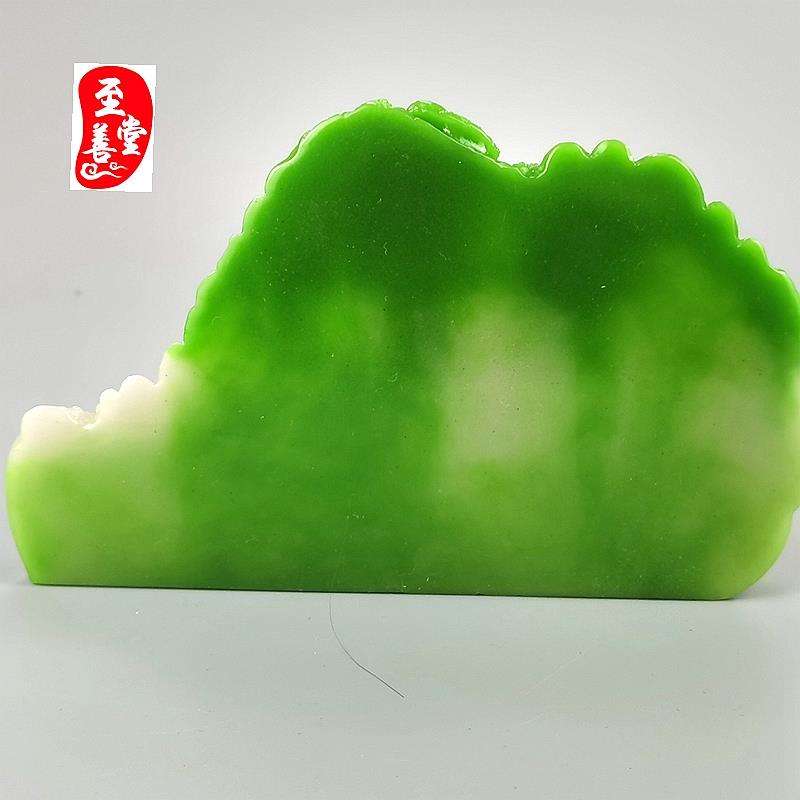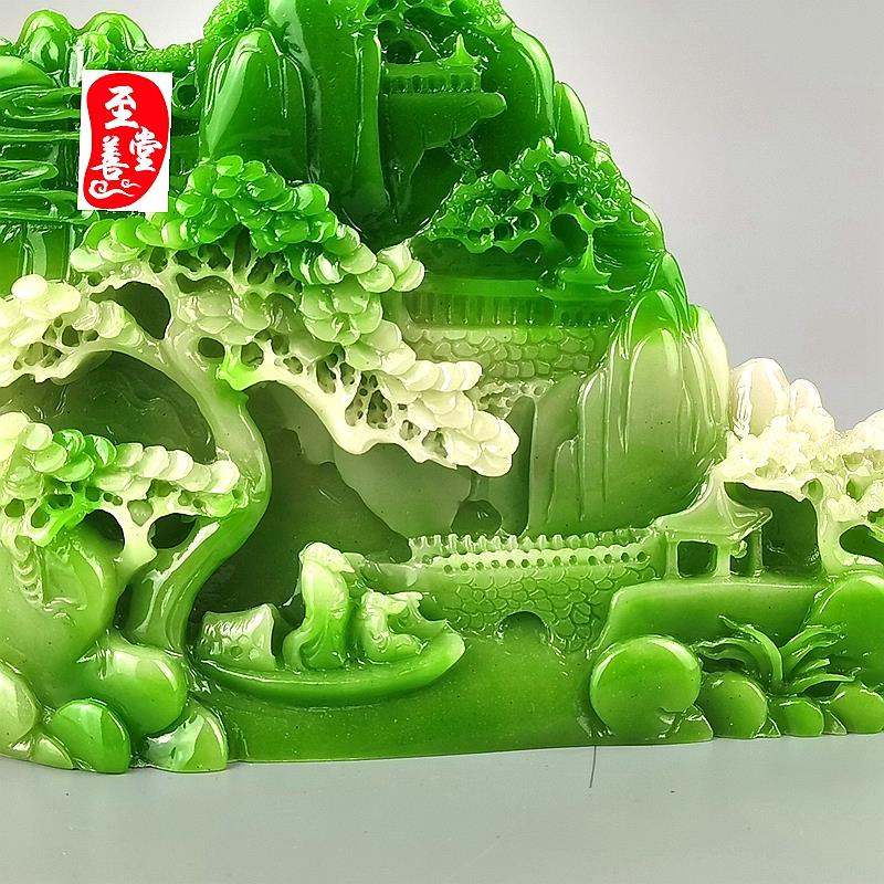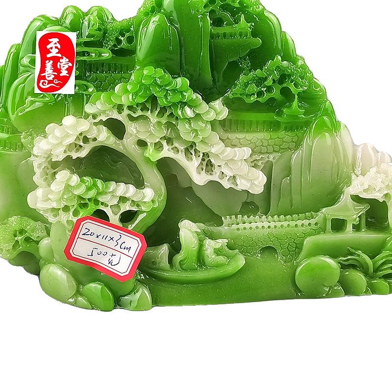 古玩收藏仿玉石原石寿山石雕翡翠色游三峡山水摆件客厅装饰品