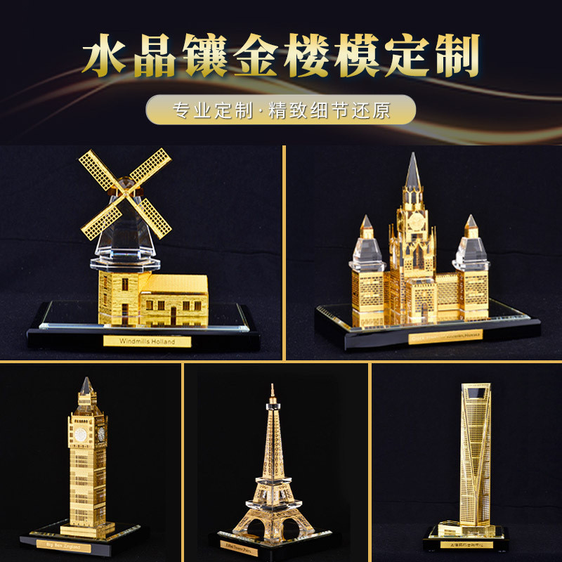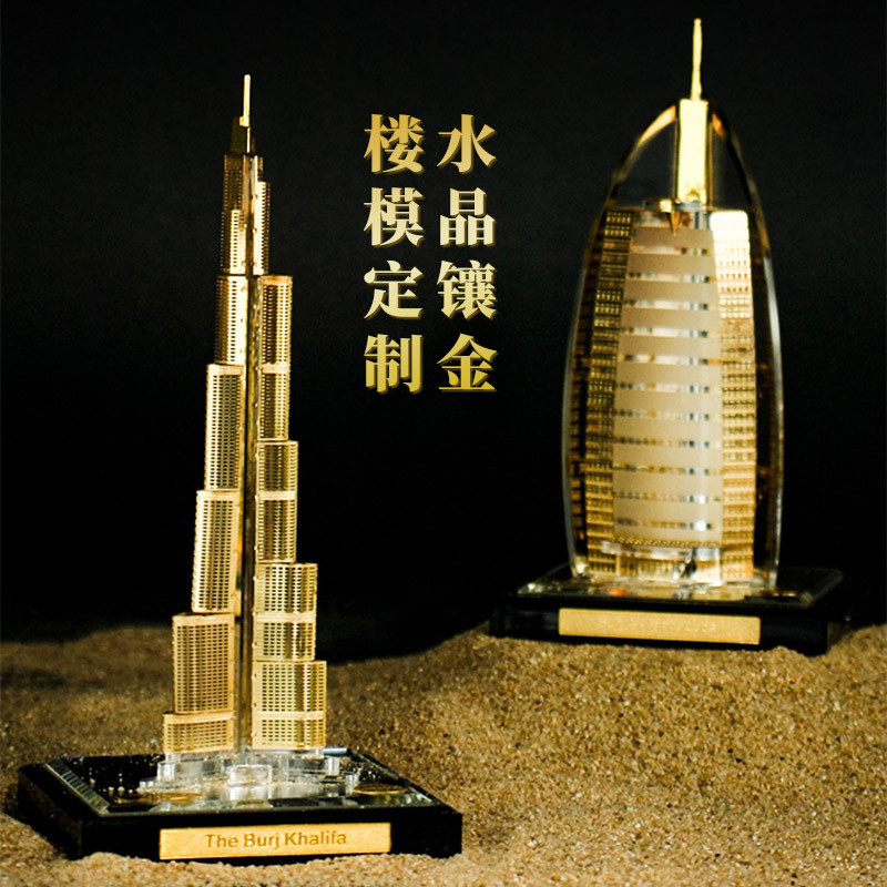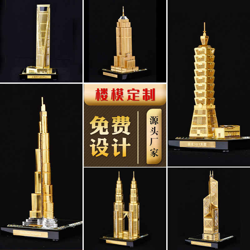 金属楼建筑模型摆件双子塔内雕工艺品水晶模摆件3d纪念礼品定制