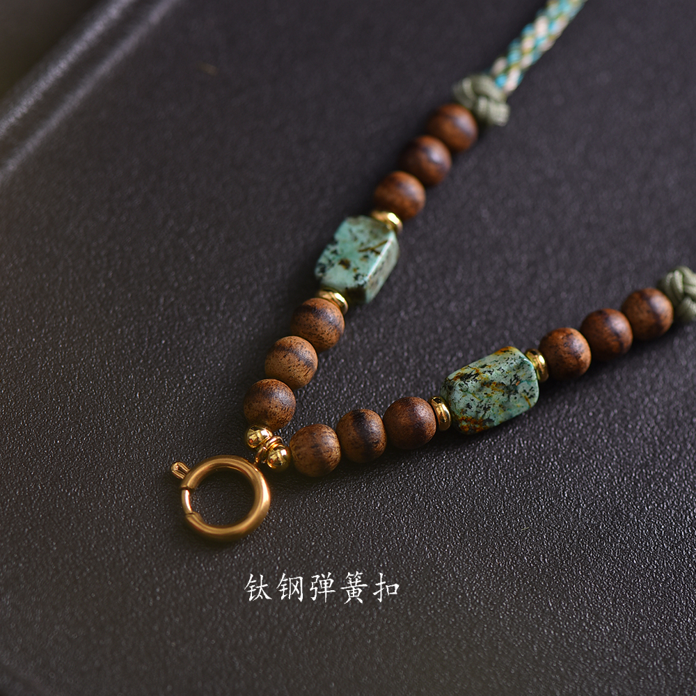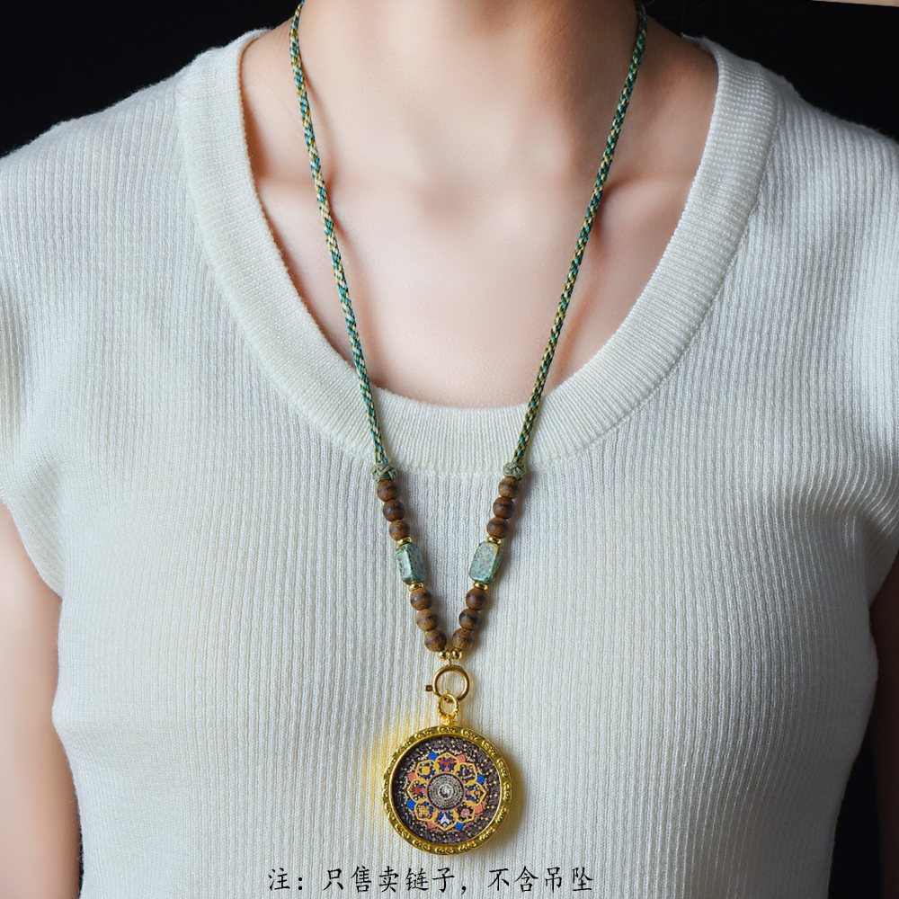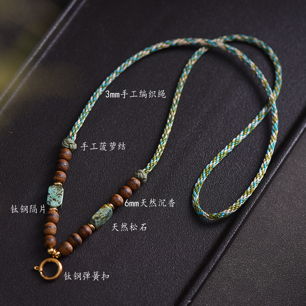 天然松石沉香挂链吊坠挂绳佛牌链唐卡挂链高档黄金翡翠玉绳弹簧扣