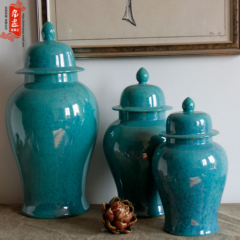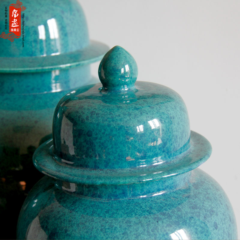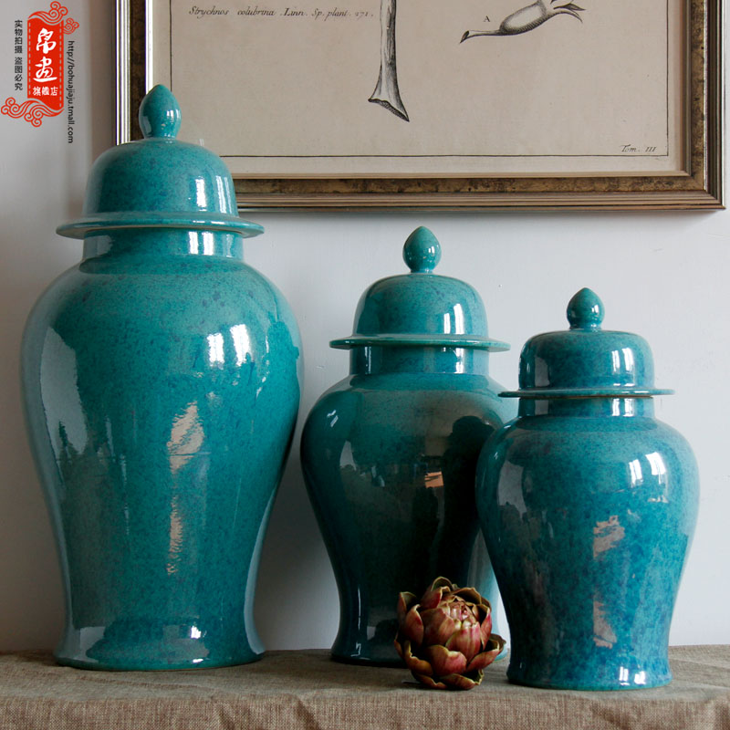 景德镇陶瓷干花花瓶玛瑙蓝色将军罐高雅家居客厅玄关收纳装饰摆件