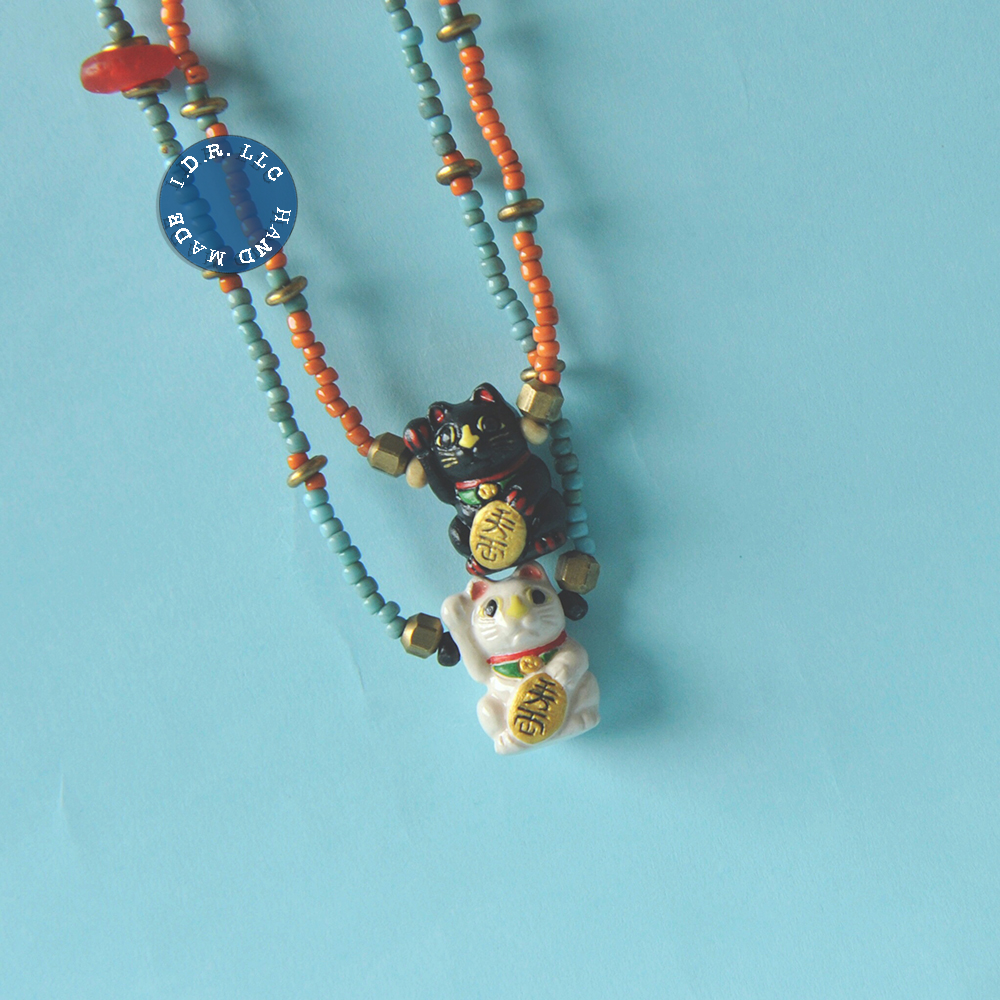 IDR LLC | HANDMADE星际碎片回收公司可爱复古琉璃珠招财猫项链