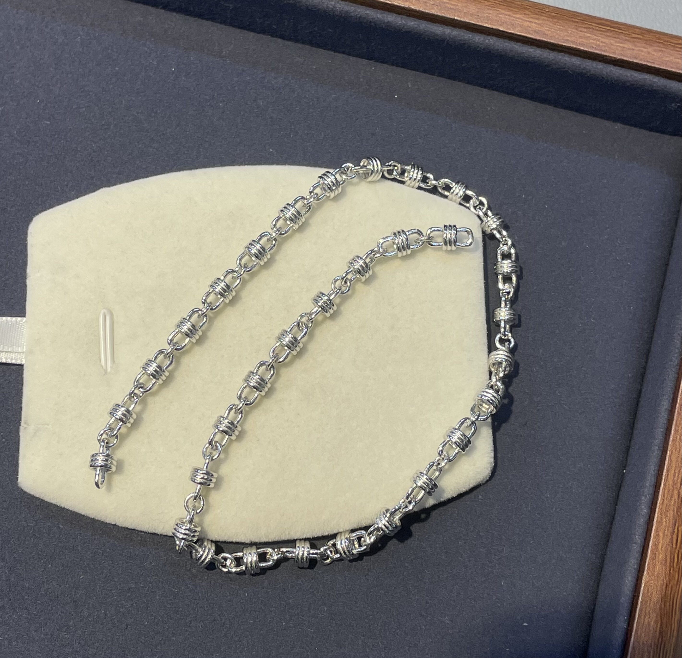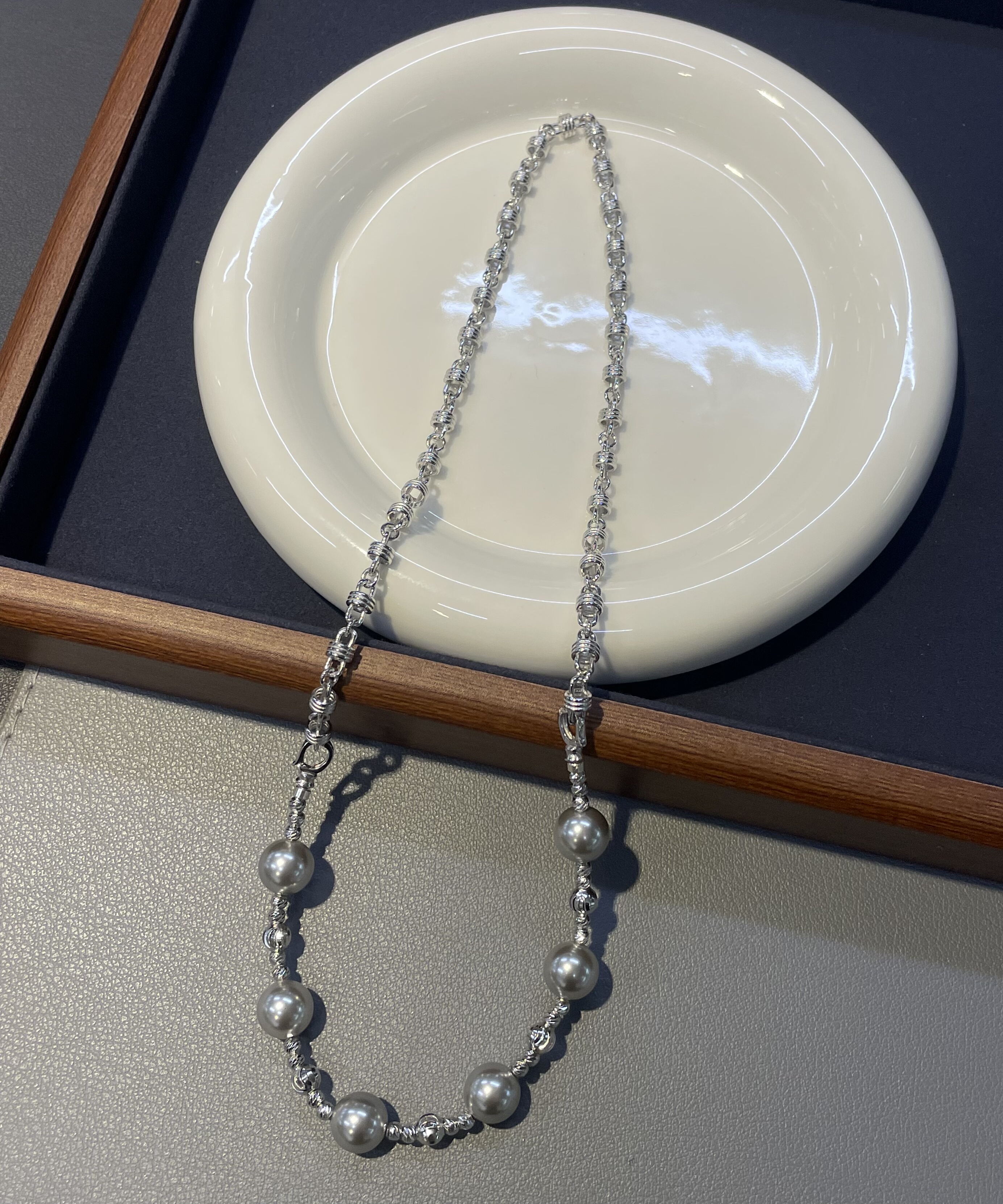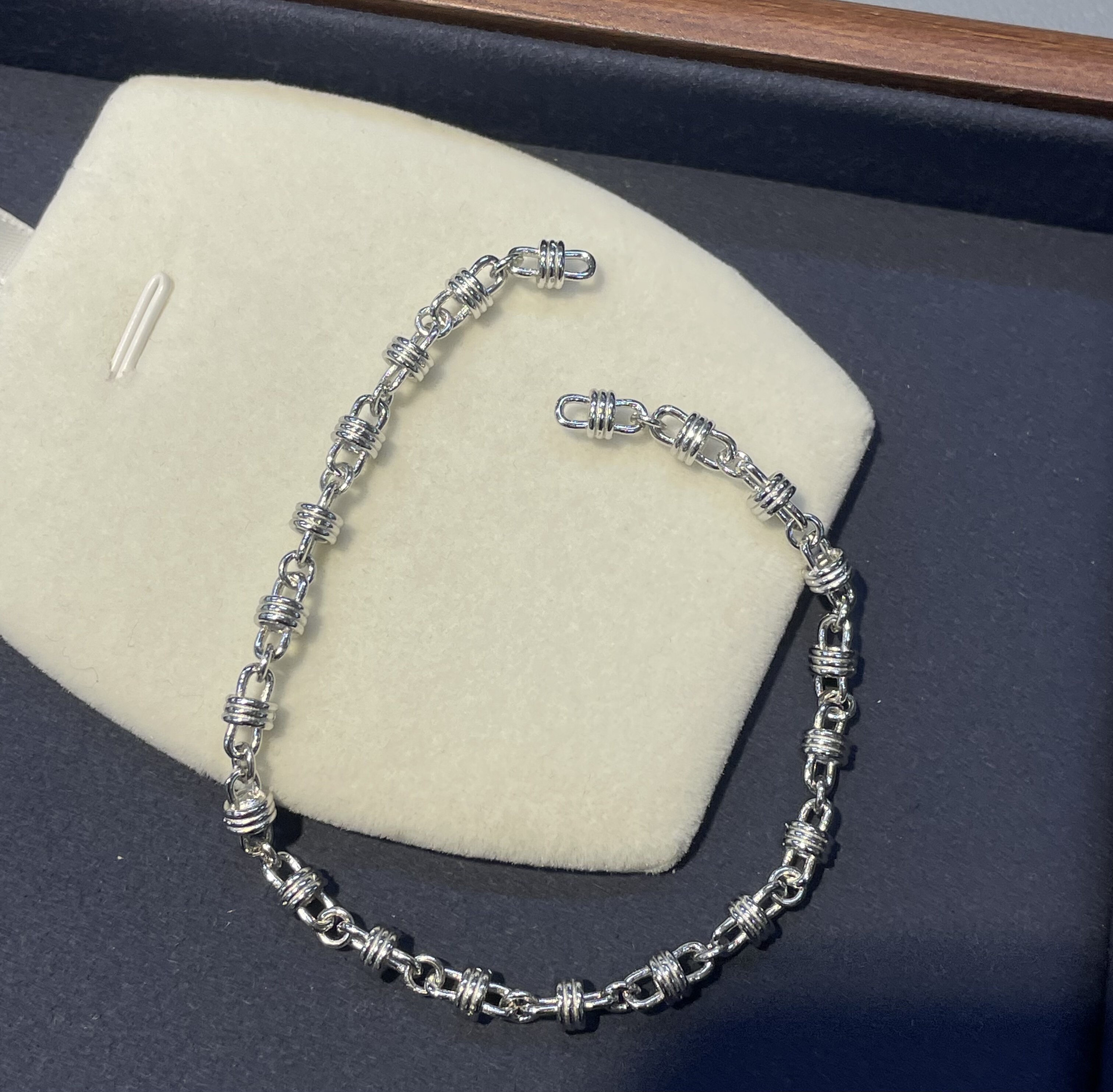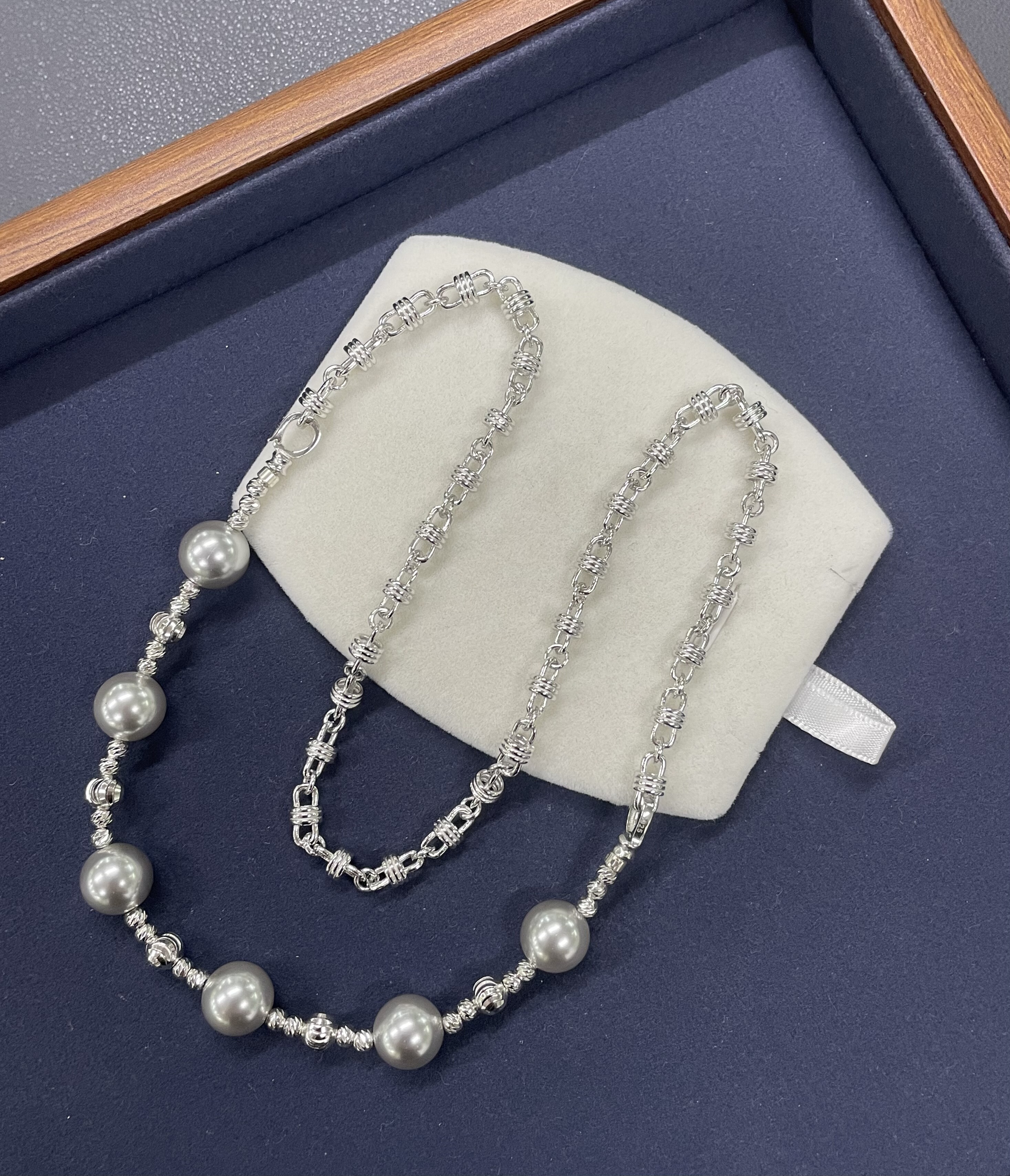 S925银镀白金横纹短筒灯笼链大溪地珍珠半珠半链 DIY加长银链实心