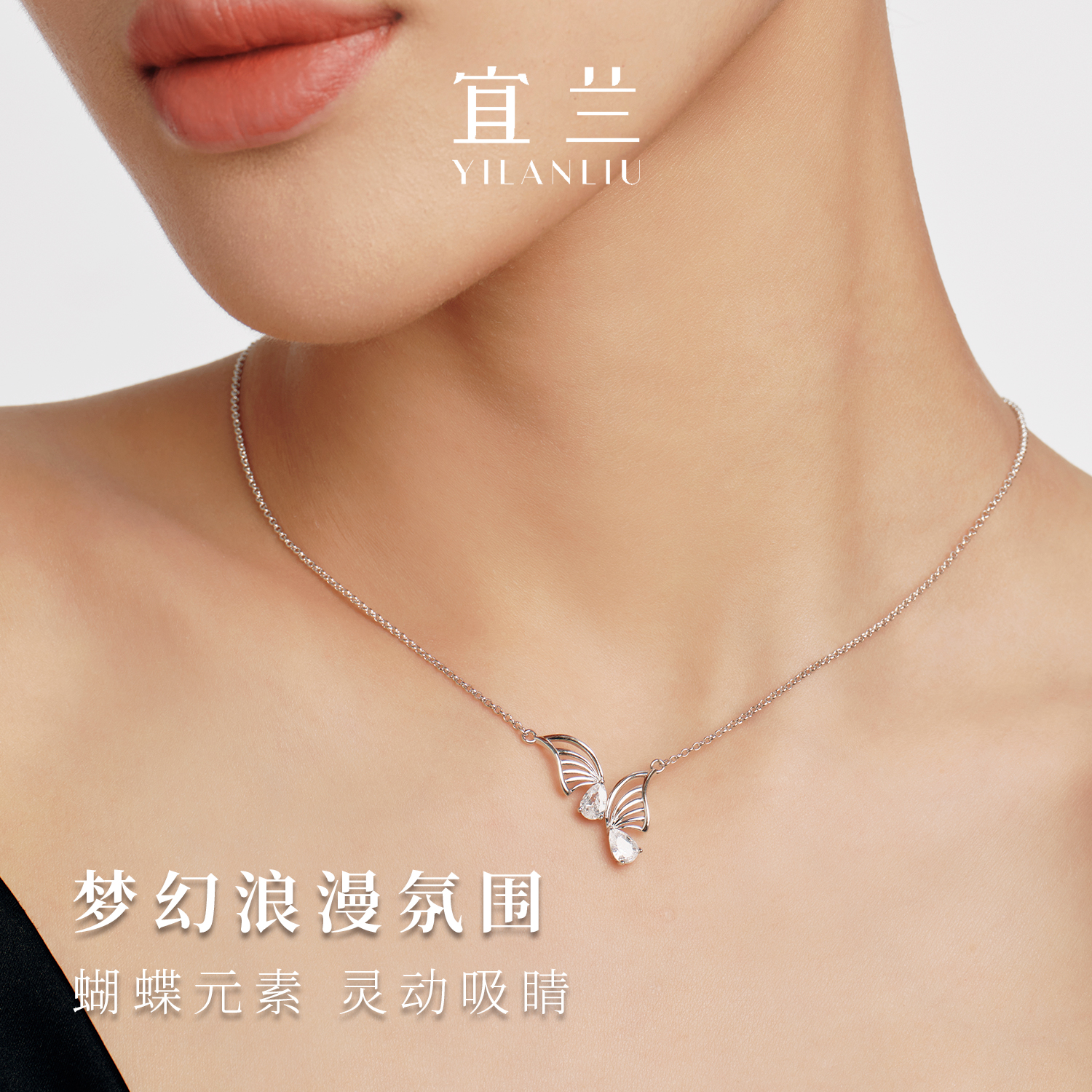 宜兰珠宝蝴蝶项链女小众设计感高级百搭简约优雅轻奢新款节日礼物