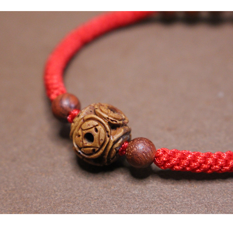 桃核本命年编制手链编织脚链招财红绳子手串路路通六面来财