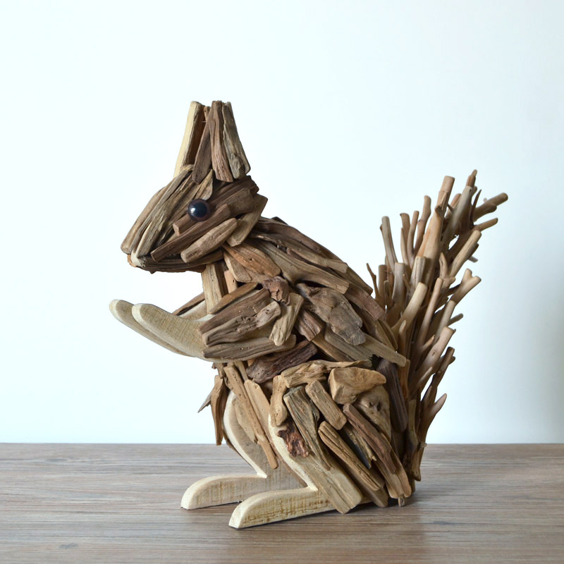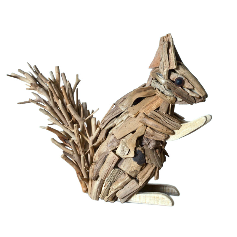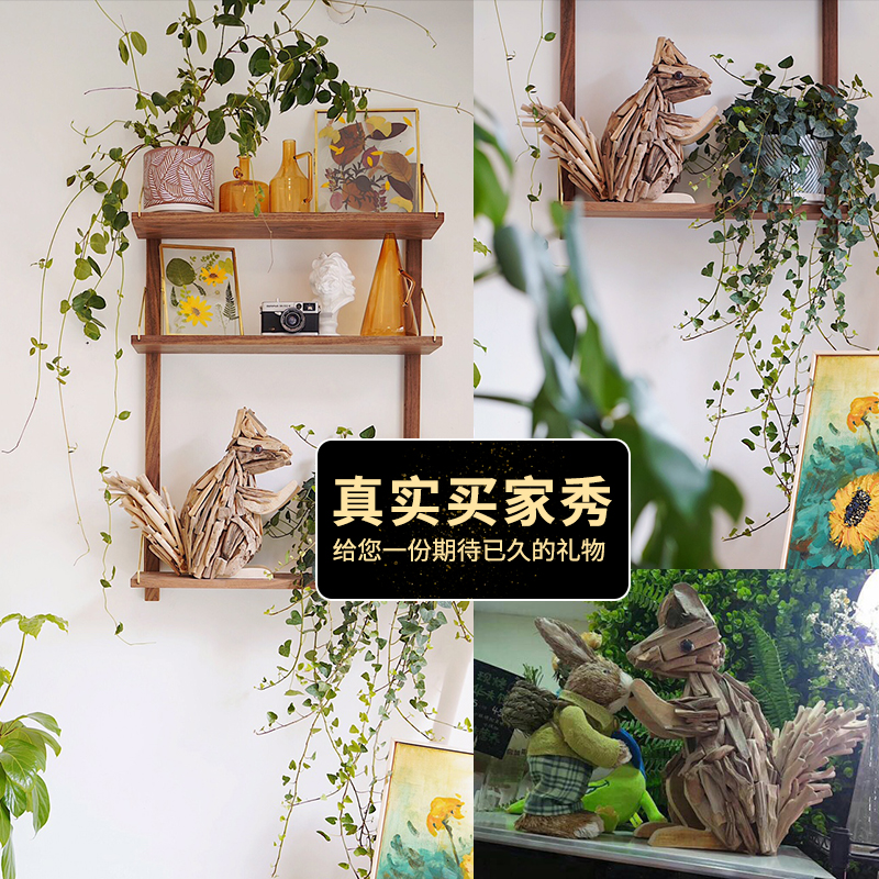手工实木松鼠电视柜摆件摆设小动物工艺品家居客厅天然装饰品礼物
