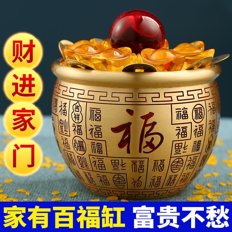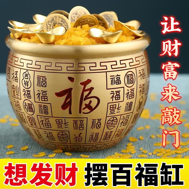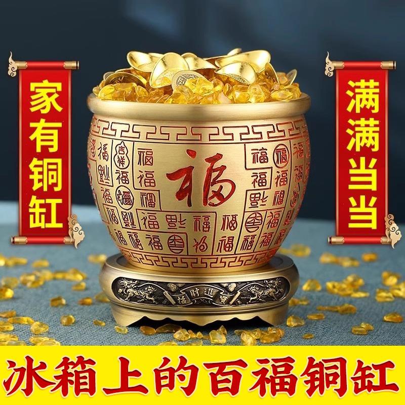 百福缸冰箱纯铜制百福黄铜米缸家用招财聚财朱砂缸聚宝盆客厅摆件