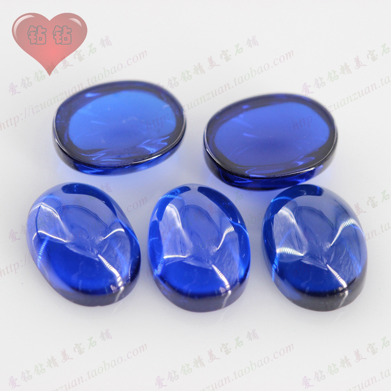 蛋形平底素面113#蓝尖晶石戒面裸石 椭圆形合成蓝宝石裸钻主石diy