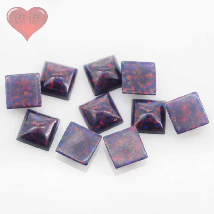 公主方平底素面人造彩色澳宝裸石 正方形直角欧泊石戒面主石FH22
