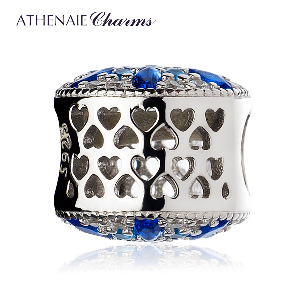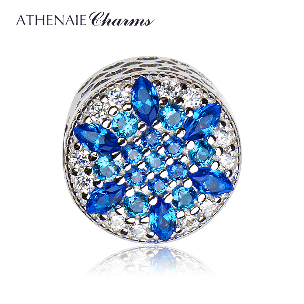 ATHENAIE925银镶钻蓝色雪花银珠子吊坠搭基础手链 蓝色之恋情侣款